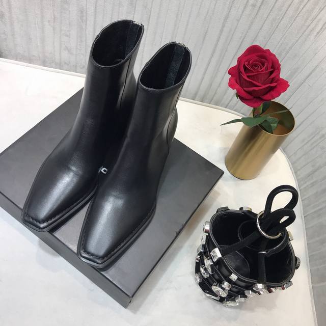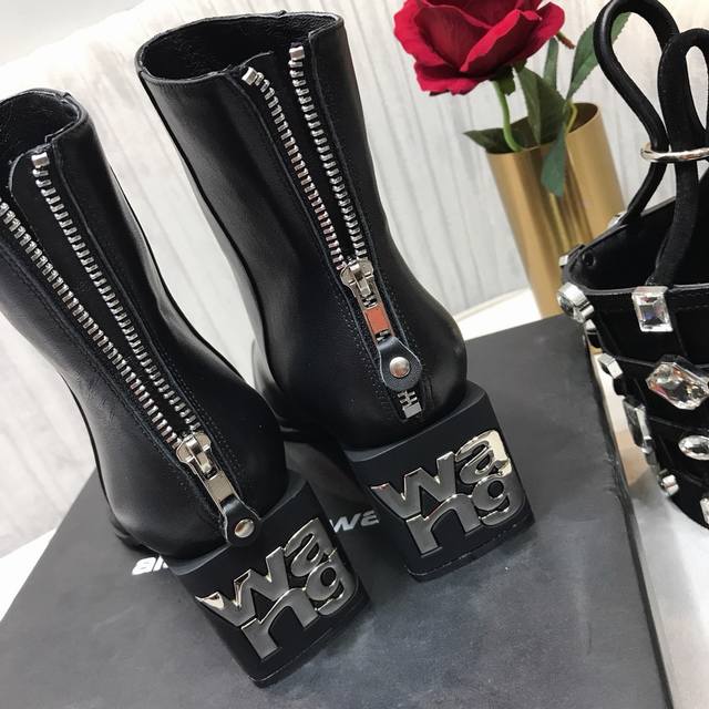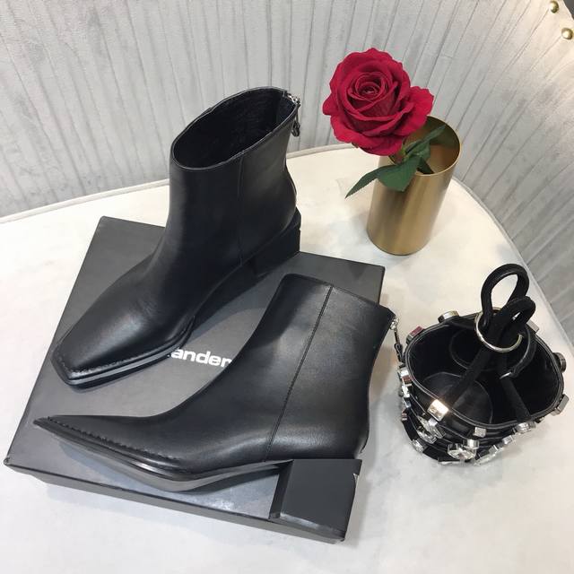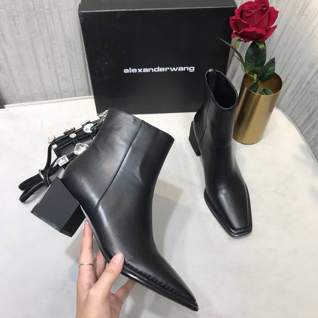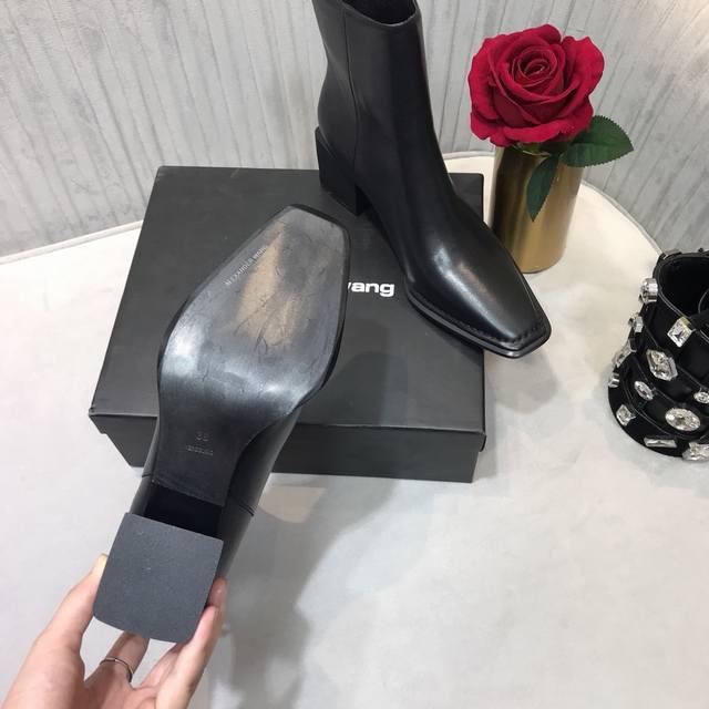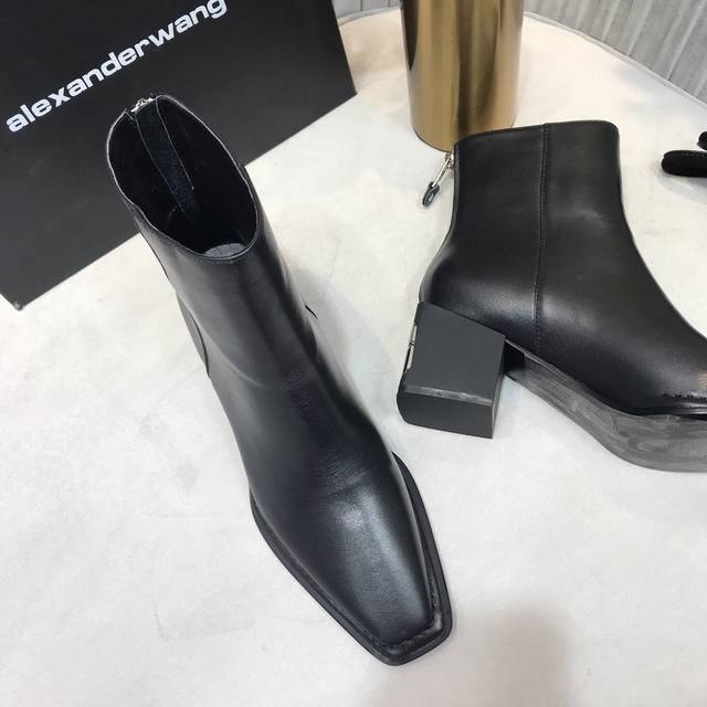 Factory direct women's shoes and athletic shoes, original Alexander Wang New York Fashion Week Fall/Winter collection chunky heel ankle boots. An unbeatable street style essential, the perfect weapon to save your fall/winter wardrobe! The upper is made of imported top-grain cowhide, with a sheepskin lining and insole. Perfect for winter coats and sweaters, spring and autumn trench coats and cardigans, and summer skirts and jeans. Pairs with everything and instantly elevates your style. Heel height: 6.5cm. Sizes: 35-39. 40 (Custom made). Price: