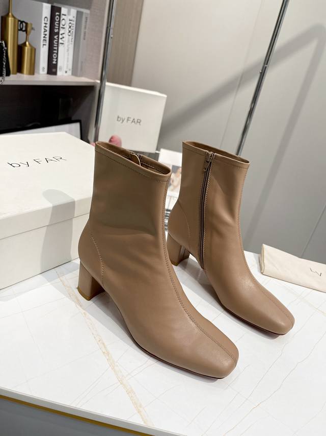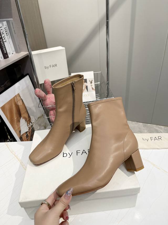Factory direct women's shoes and athletic shoes, original single item. By Far ankle boots. Classic and versatile boots. A new shoe brand from Bulgaria. By Far footwear's most prominent and consistent feature is its simple yet unique toe design. Very stylish and easy to wear. The simple, flowing lines flatter the foot shape and make them more comfortable. Girls who don't often wear high heels should definitely try these! Satisfaction guaranteed! Even the most active women can wear them comfortably without getting tired feet! The upper is made of imported environmentally friendly cowhide, and the lining is all sheepskin, making it softer. Sheepskin insole. Two-tone genuine leather outsole, 5.0cm heel. Sizes: 34-41 (true to size). Sizes 34, 40, and 41 are custom-made. For those with wide feet or high insteps, it is recommended to go up one size. Original box packaging!