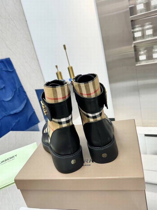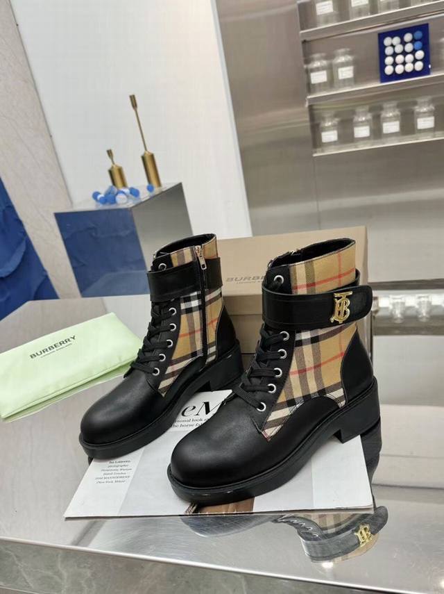features Burber's unique plaid style. The upper is made of top-grade cowhide + sheepskin lining and sheepskin insole.