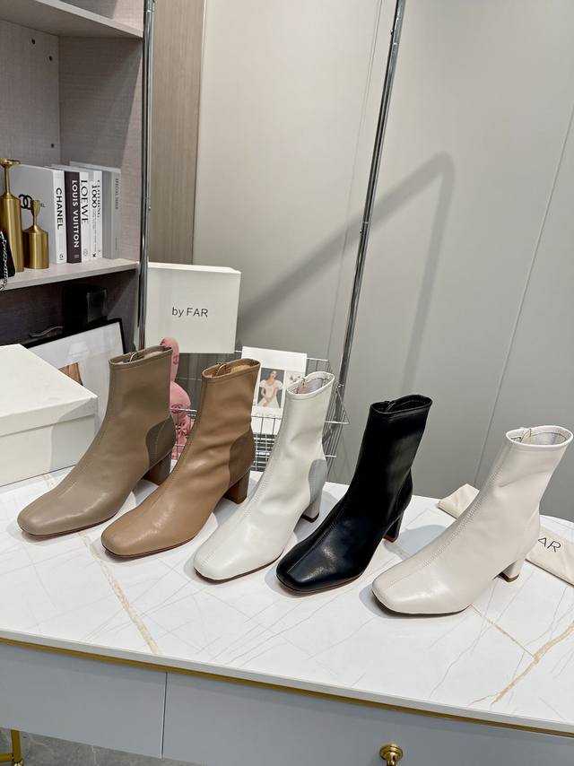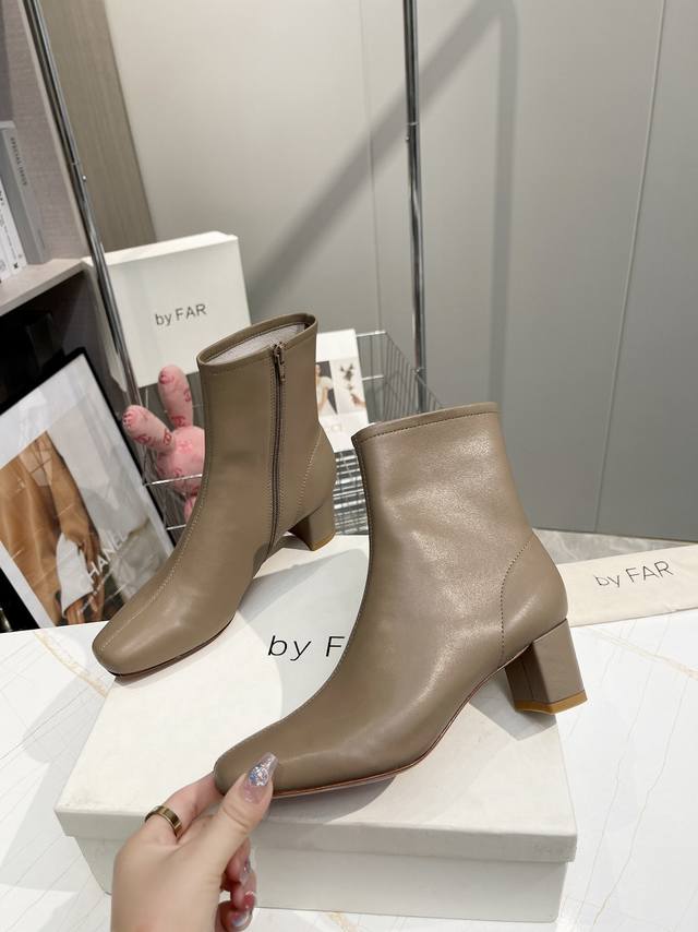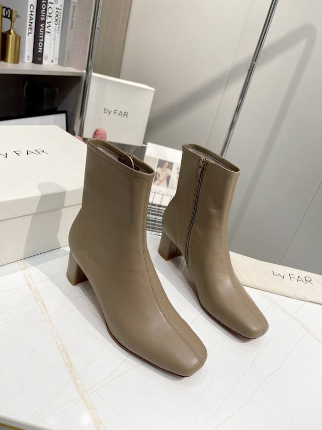 Factory direct women's shoes and sportswear original single By Far ankle boots. Classic and versatile boots. By Far shoes, a new shoe brand from Bulgaria, are characterized by their simple yet unique toe design. They are very stylish and the simple, smooth lines flatter the foot shape for greater comfort. Girls who don't often wear high heels should definitely try them out! Satisfaction guaranteed! Even the most active women can wear them comfortably without getting tired feet! The upper is made of imported environmentally friendly cowhide, and the lining is made of full sheepskin for extra softness. The insole is also made of sheepskin. Features a two-tone genuine leather outsole and a 5.0cm heel. Sizes: 34-41 (true to size). Sizes 34, 40, and 41 are custom-made. For those with wide feet or high insteps, it is recommended to go up one size. Original box packaging!