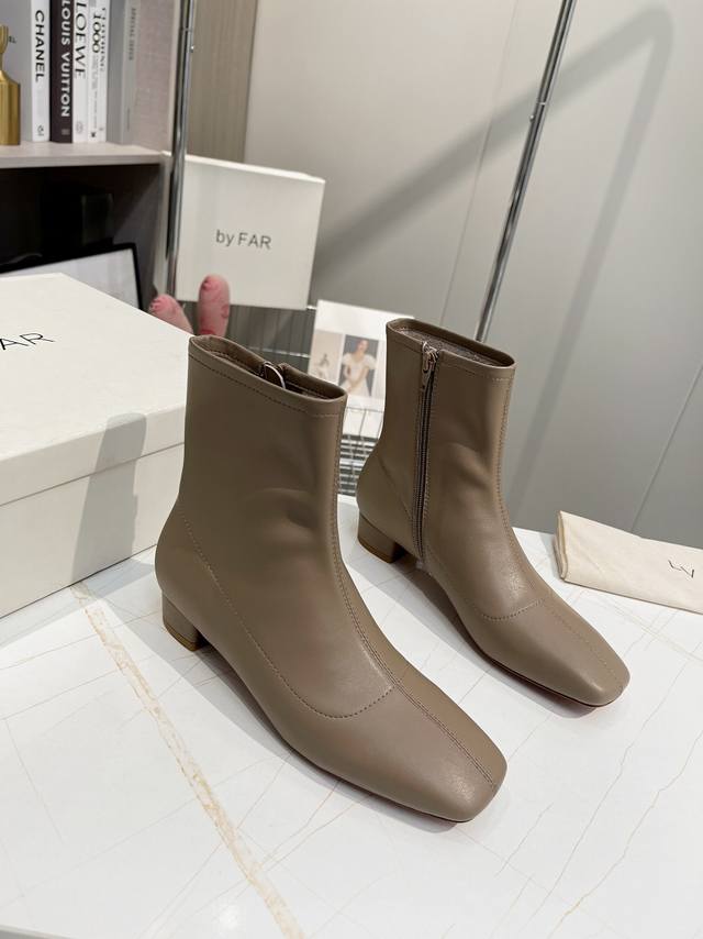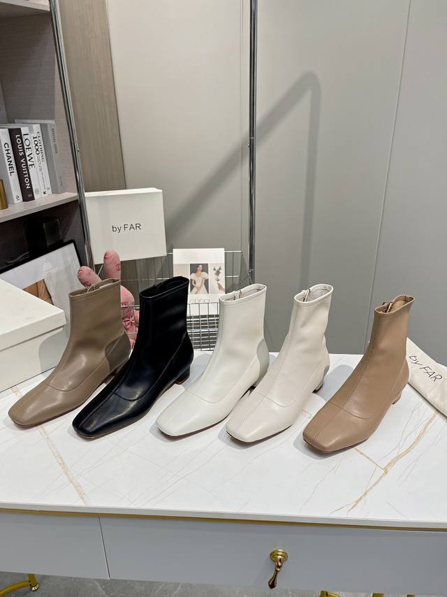 Factory direct women's shoes and sportswear original single By Far ankle boots. Classic and versatile boots. A new shoe brand from Bulgaria, By Far footwear's most prominent and consistent feature is its simple yet unique toe design. Very stylish and easy to wear, the simple, flowing lines flatter the foot shape and make it more comfortable. Girls who don't often wear high heels should definitely try these! Satisfaction guaranteed ! Even the most active women can wear them comfortably without getting tired feet! The upper is made of imported environmentally friendly cowhide, and the lining is all sheepskin, making it softer. Sheepskin insole. Two-tone genuine leather outsole, 2.5cm heel height. Sizes: 34-41 (true to size). Sizes 34, 40, and 41 are custom-made. For those with wide feet or high insteps, it is recommended to go up one size. Original box packaging!