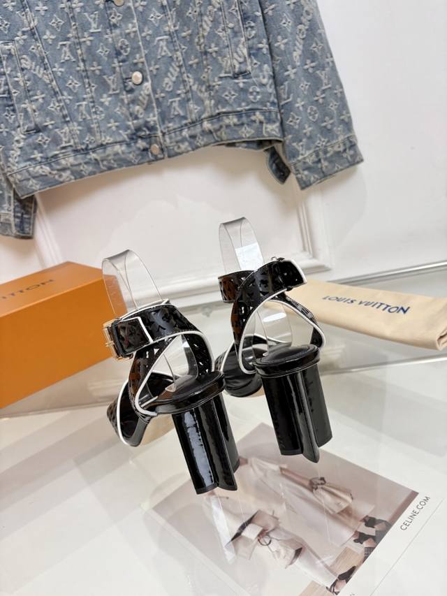 Factory direct women's shoes and sportswear original single item. 2025 latest L brand spring/summer collection, latest runway sandals, synchronized with official website series, perfect last + laser engraving on the upper + edge painting design, recreating the classic style, simple and elegant, looks great on the feet, original mold last, perfect 1:1 shape, high-end quality, imported high-end materials presenting exquisite texture! Material: Imported cow patent leather; Lining: High-quality soft sheepskin; Insole: Imported goatskin; Custom-made A-grade high-density private mold genuine leather outsole, luxurious packaging! 10cm plum blossom heel with leather upper; Sizes: 35-40, 34, 40, 41, 42. Custom orders are non-refundable and non-exchangeable.