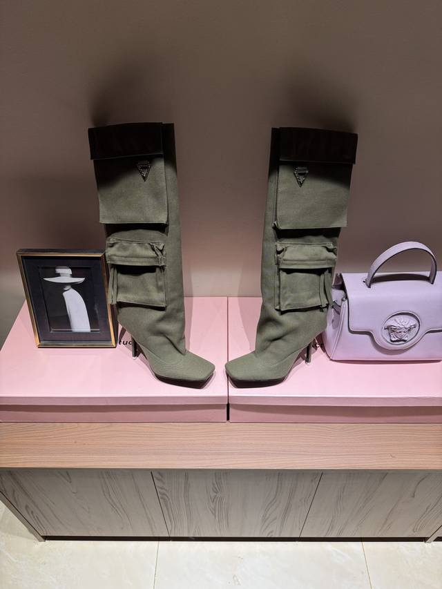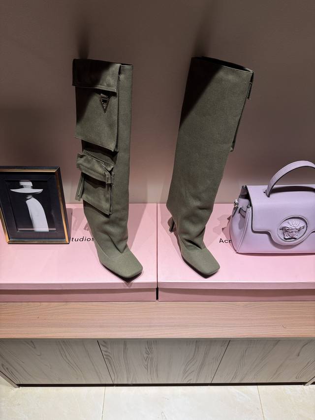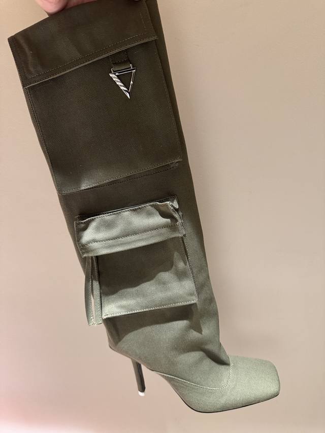 Theattico 2025 Autumn/Winter Collection Square Toe Denim Pocket Boots