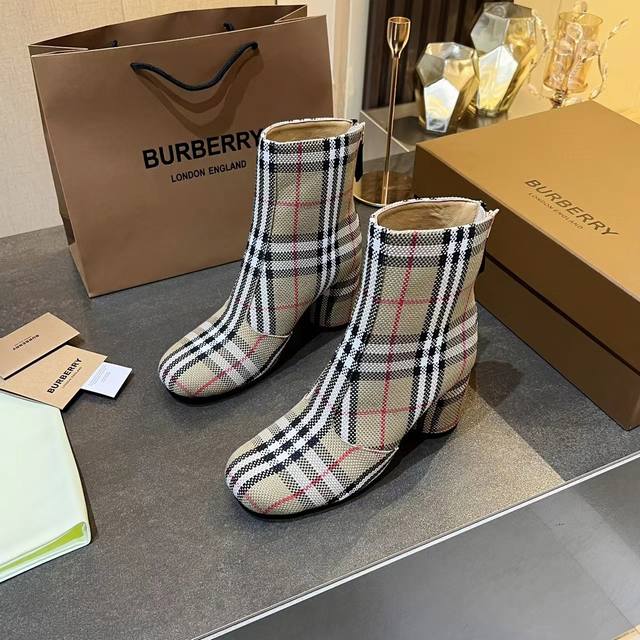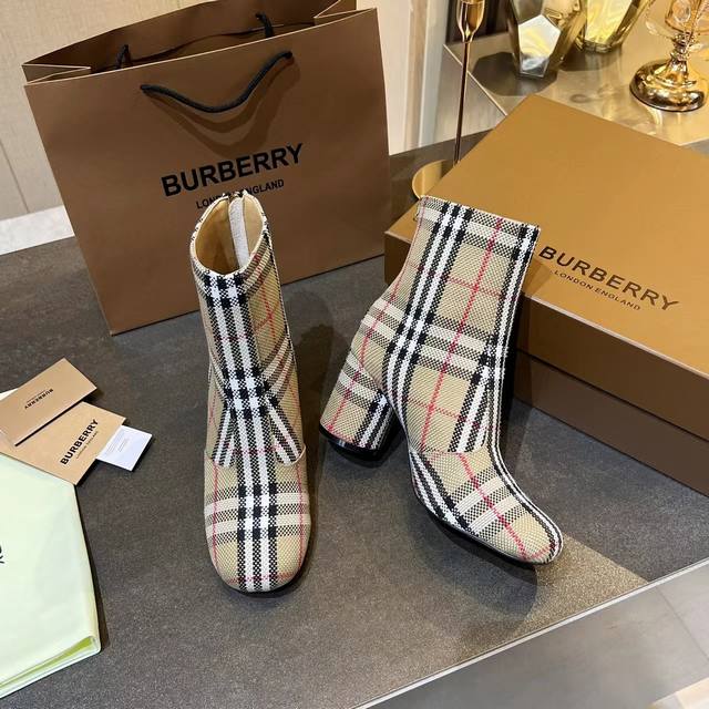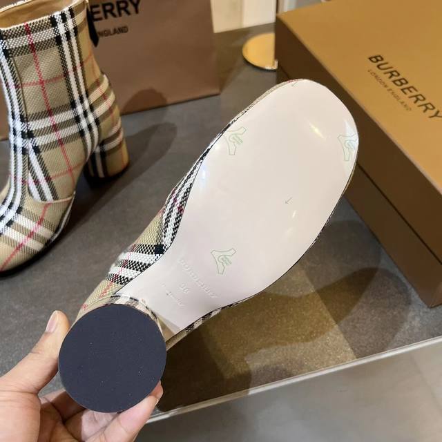 Factory direct women's shoes, sports boots, original single-piece short boots, equestrian-inspired ankle boots. Made with select materials and featuring House plaid pattern panels. Lining: 100% sheepskin; Sole: Rubber; Heel height: 7cm; Boot shaft height: 10.5cm; Boot opening circumference: 22.5cm; Sizes 35-42.