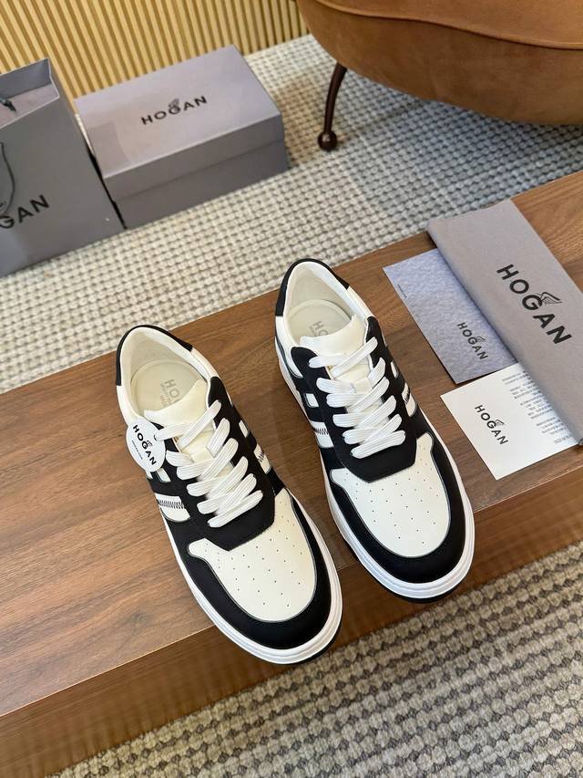 Factory direct women's shoes, sportswear, original Hogan round-toe casual shoes. Made of calfskin with contrasting colors, featuring a cleverly designed H logo and flowing lines. The lightweight, durable, and highly elastic outsole is made of high-quality material. The 3.8cm thick heel provides excellent elasticity. The soft and bright color scheme exudes a casual urban style, making it a top choice for all seasons and a favorite among couples. Sizes 35-44, size 45 can be customized. Guaranteed to sell out quickly!