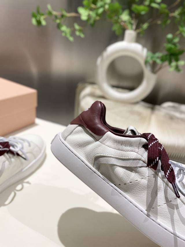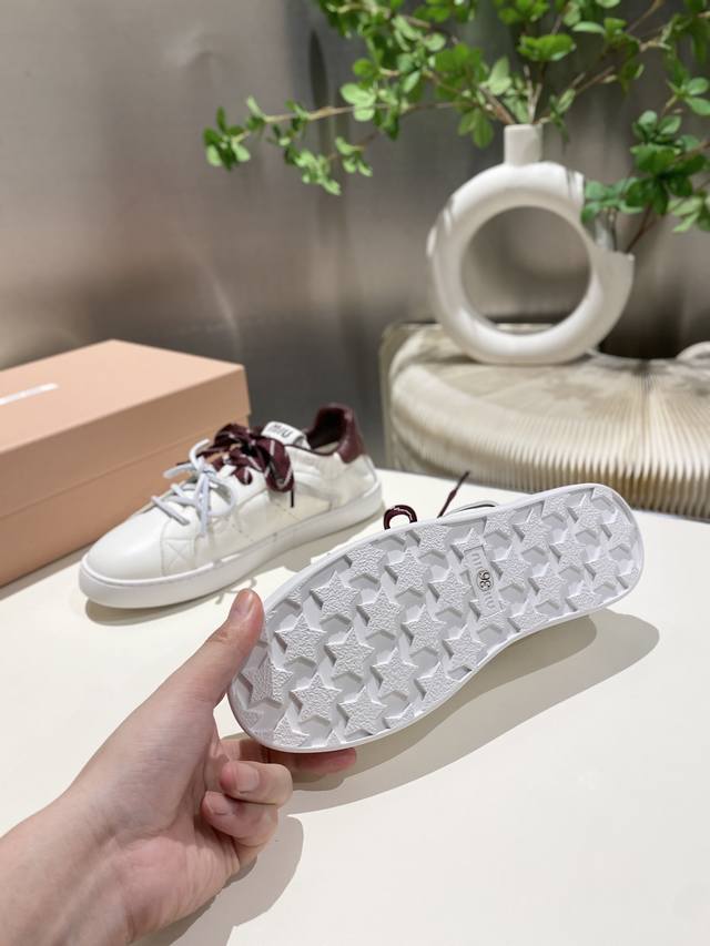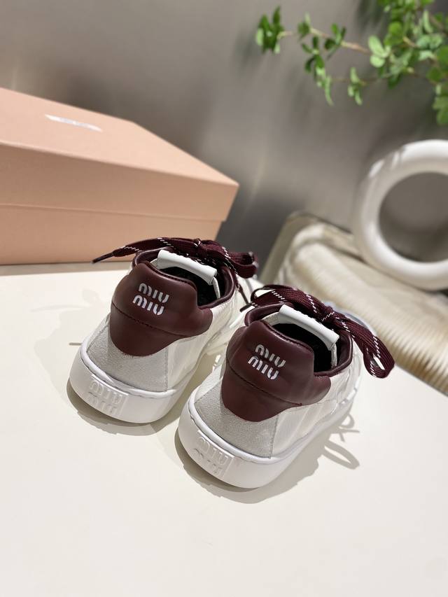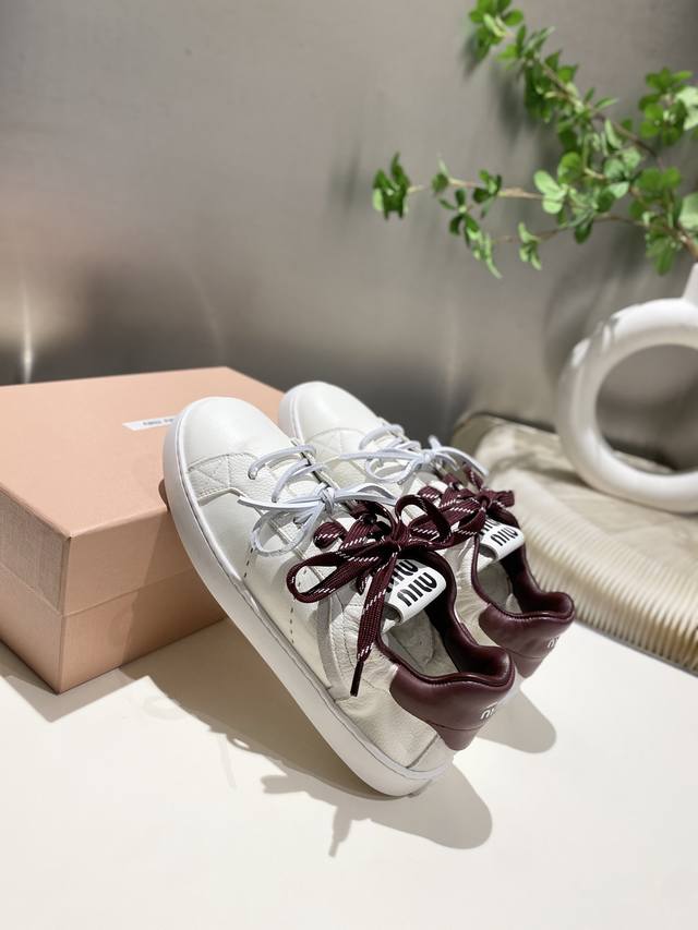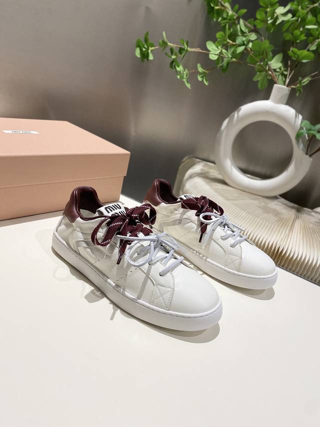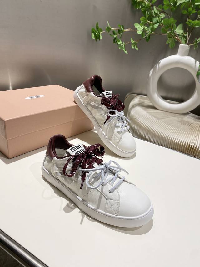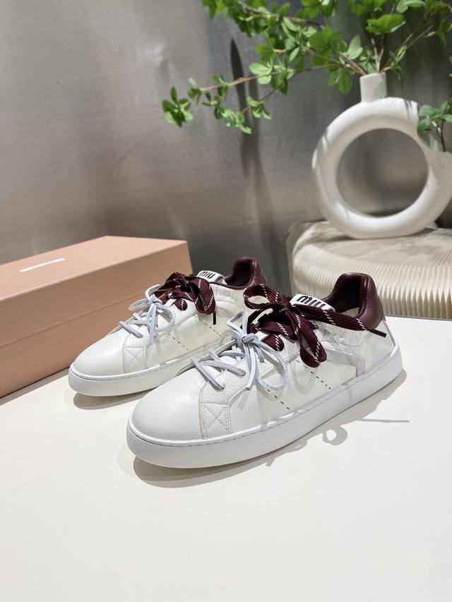 Factory Miu Miu 2025 Spring/Summer new casual white shoes are newly released. The official website mainly promotes the simple grid design and the recognizable tongue. It looks sunny and youthful when worn with long skirts, shorts and casual series. It can be worn in a unique style. The outsole is ultra-light IP foam sole and the inner layer is first-layer denim lining. The fabric is a one-to-one replica with a distressed color rubbing process. Sizes 35-39, 34_40, 41 are not refundable or exchangeable.