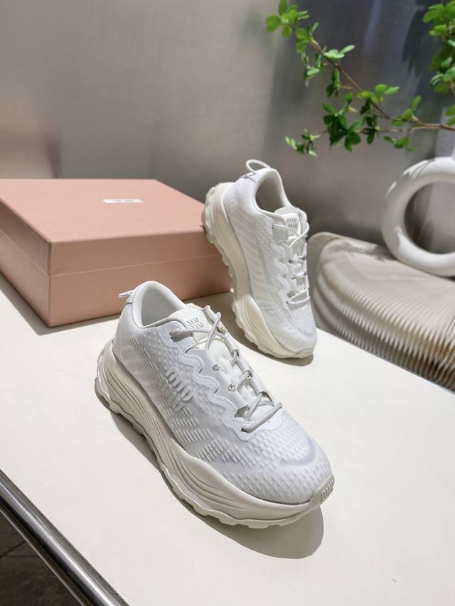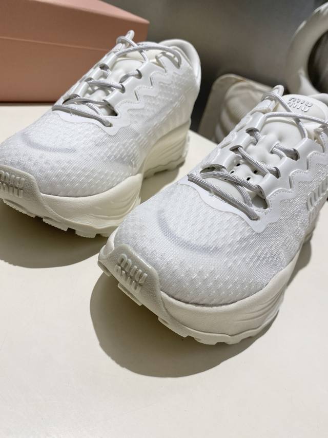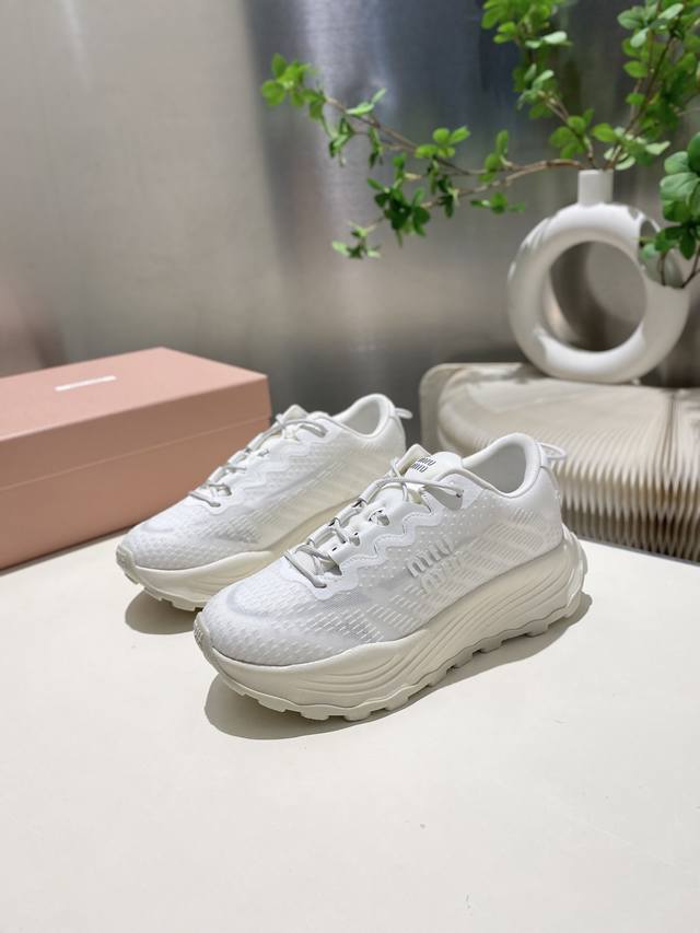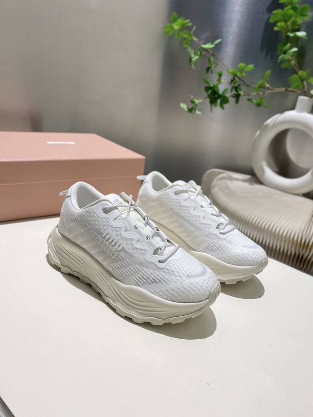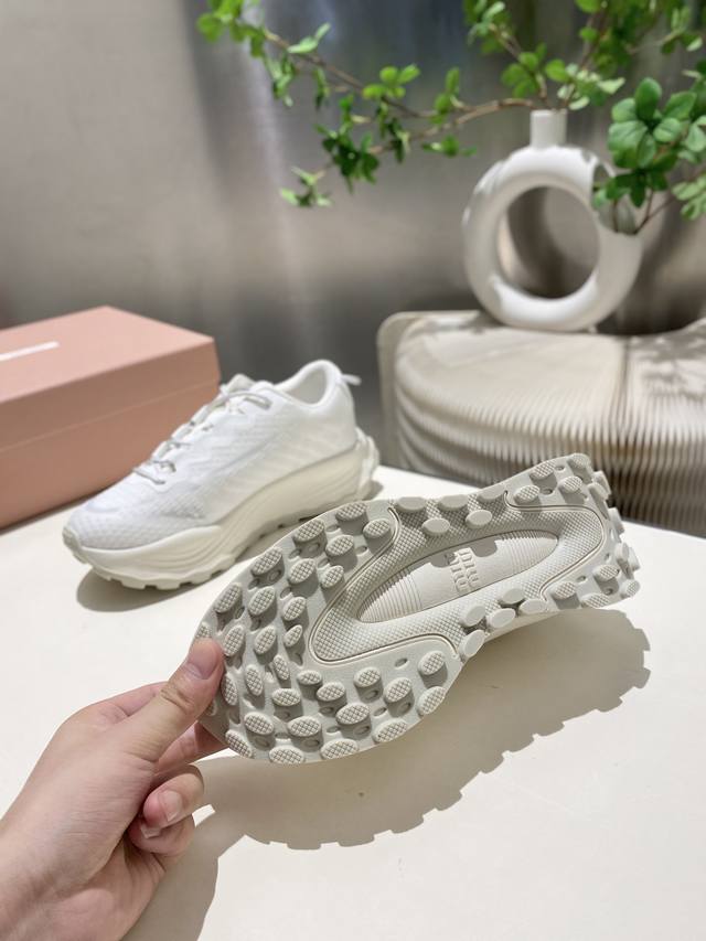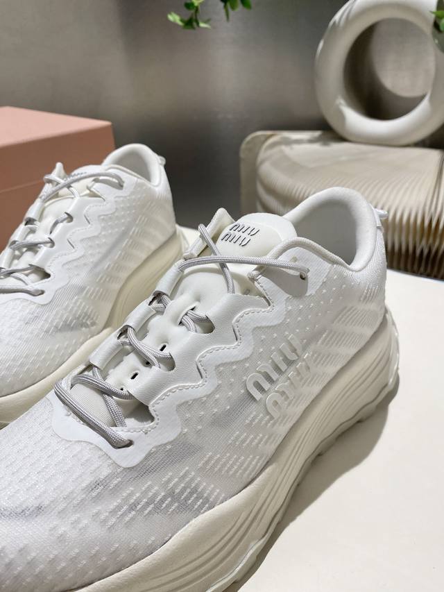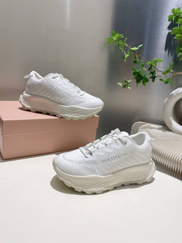 Factory Miu Miu's new hit from the 2025 runway show is here. Mesh-soled Dexter casual sneakers. These lace-up sneakers are a true American casual style