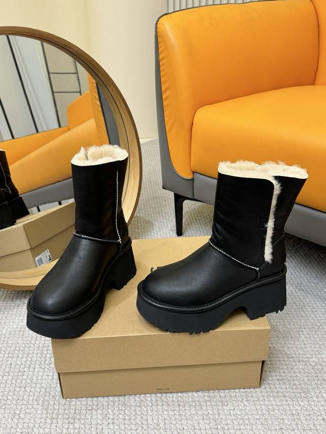 The 7cm wedge heel thick sole is light and comfortable. The fur and leather boot shaft fold-over design is the perfect combination of fashion and life.