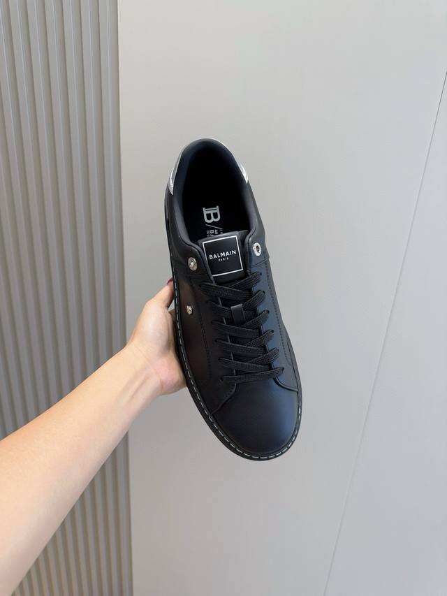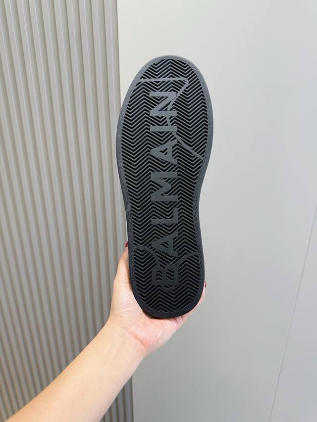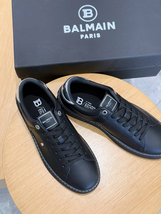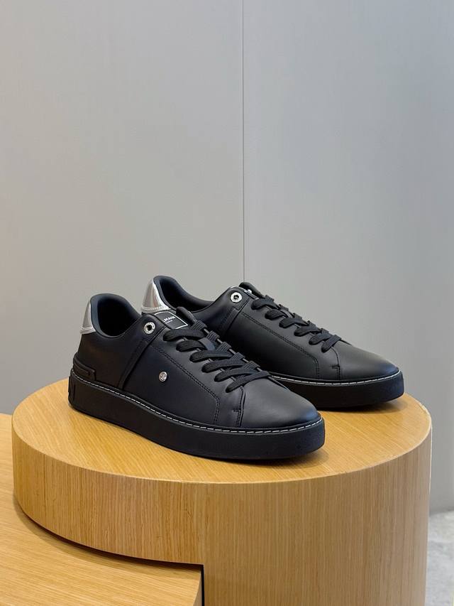 Factory p price men's sports shoes original Balmain B-Cour smooth calfskin and monogram nylon sneakers