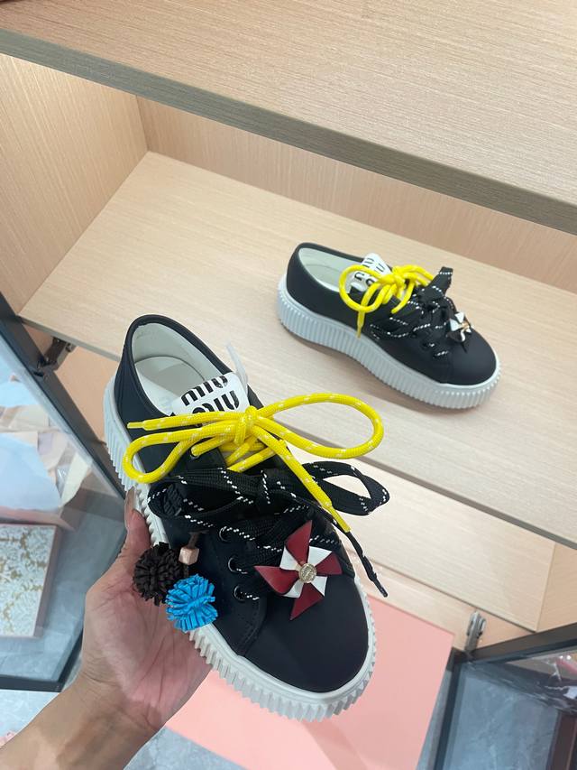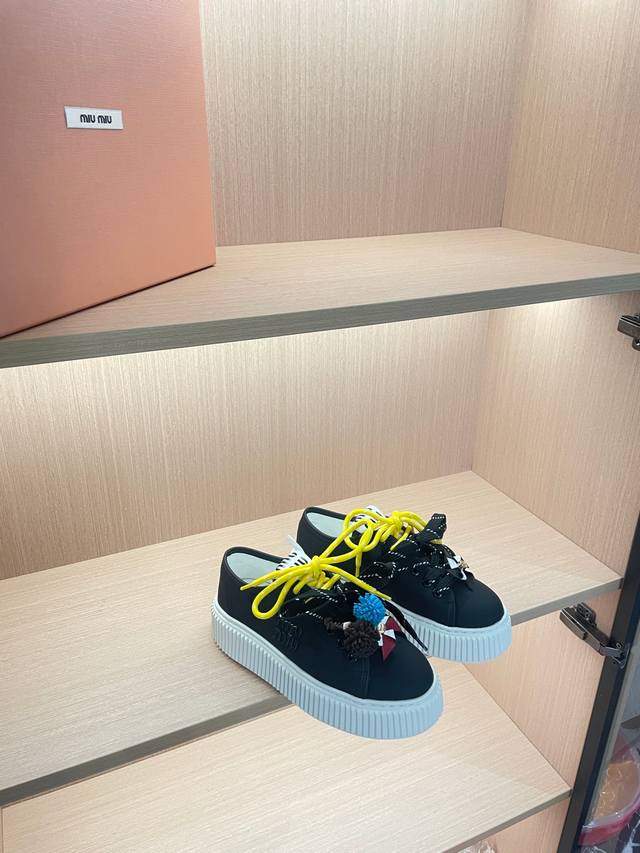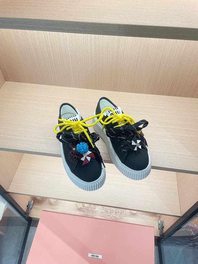 Factory p-price women's clothing and women's sports shoes original Miumiu25 autumn and winter new thick-soled biscuit shoes white shoes