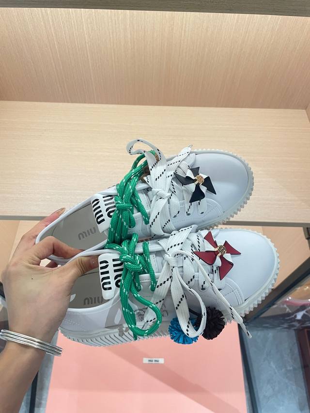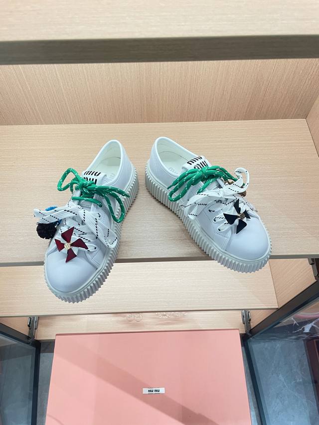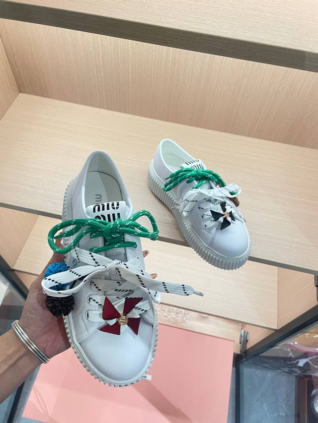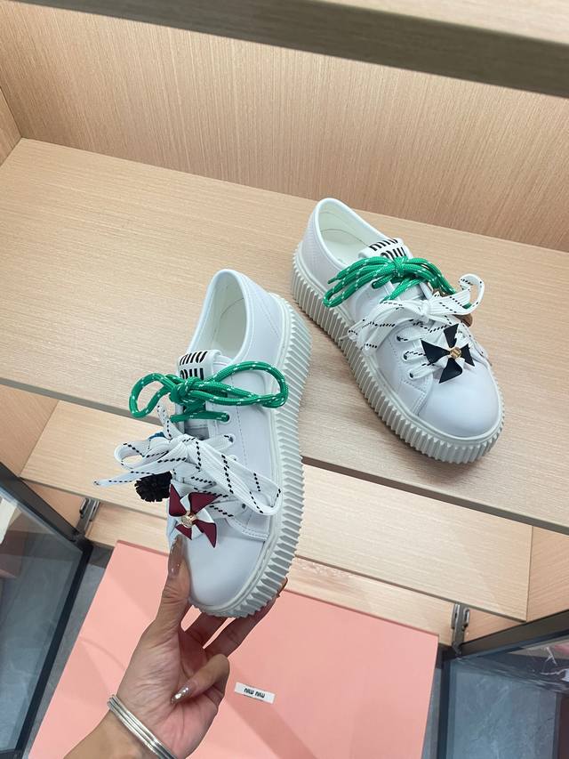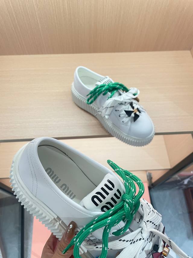 Factory p-price women's shoes sports original Miumiu25 autumn and winter new thick-soled biscuit shoes white shoes