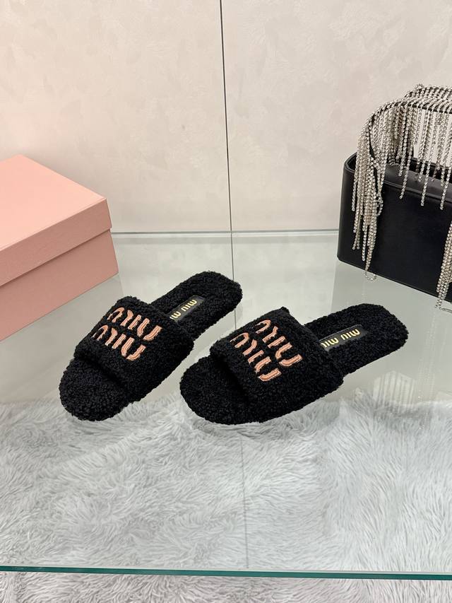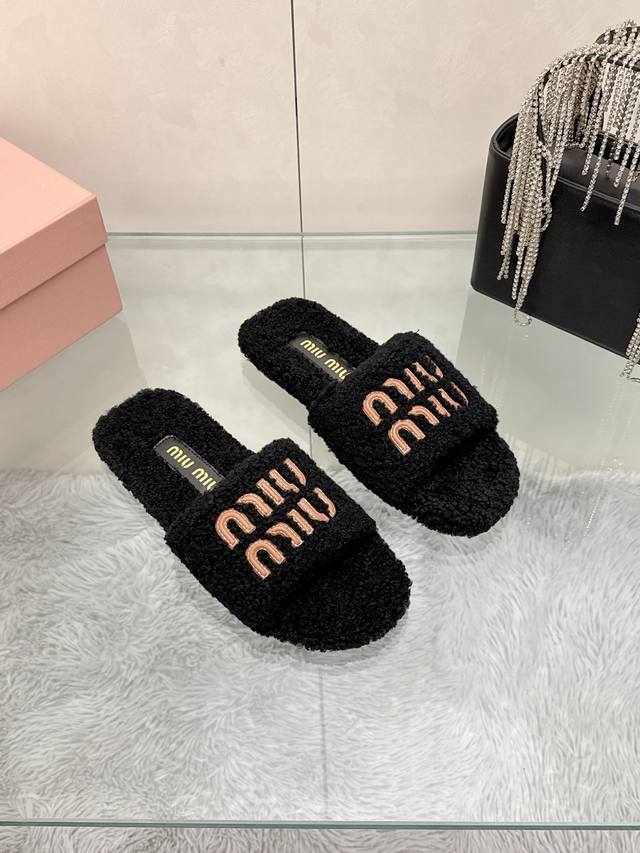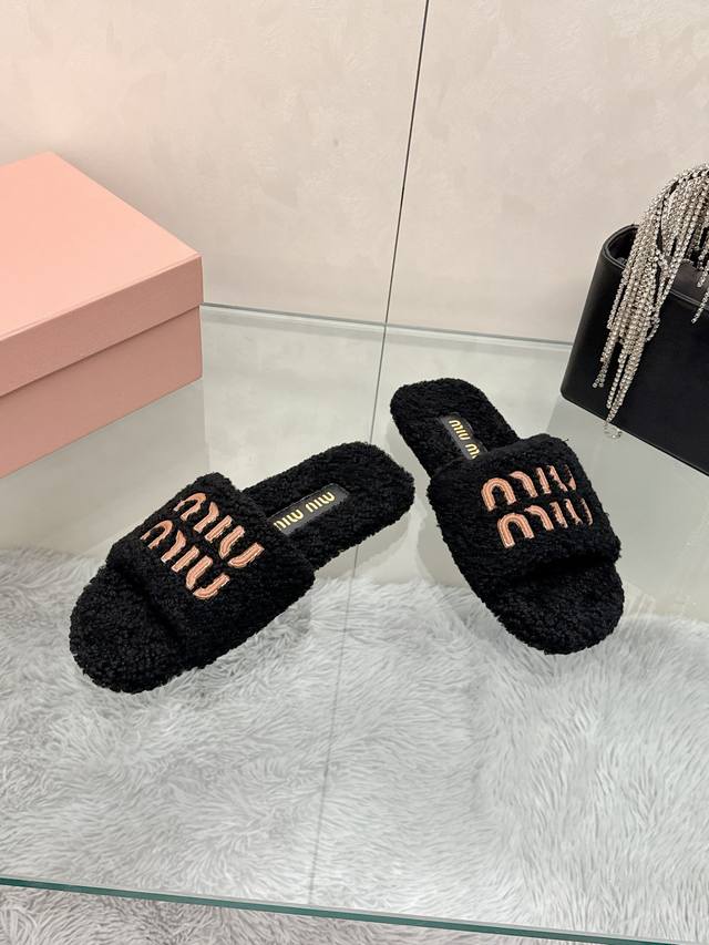 Factory Price: 100% Wool Miu Miu 2025 Latest Official Synchronized Wool Slippers. Original mold, surpassing all other versions on the market. A favorite of European and American socialites, celebrities, and influencers. European imported A-grade wool, identical to the original. The entire shoe is made of pure wool. The upper and insole logo are made of mixed sheepskin. The outsole is made of the same TPU material as the original, wear-resistant and non-slip. Sizes: 35-40, 41. Custom orders are non-refundable and non-exchangeable.