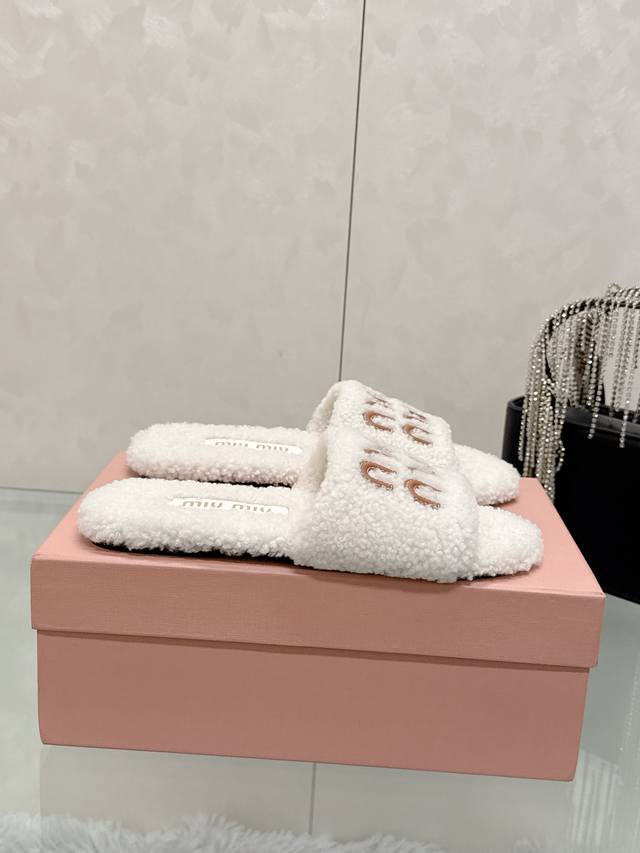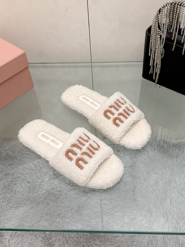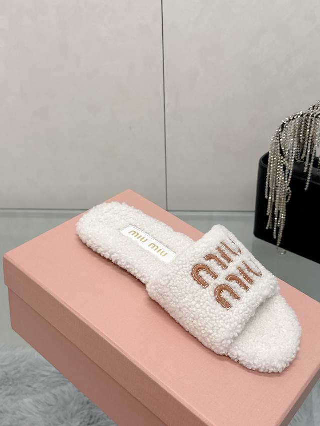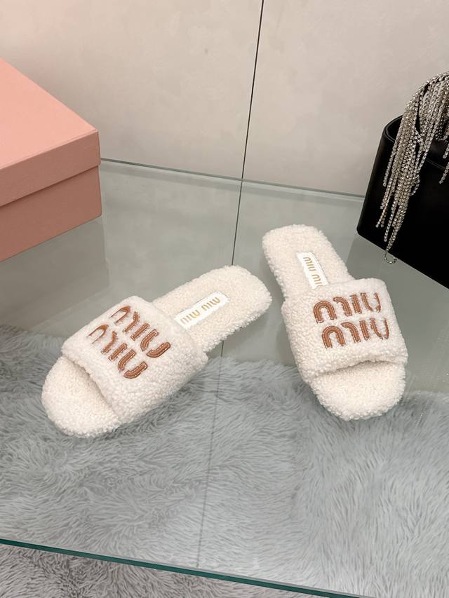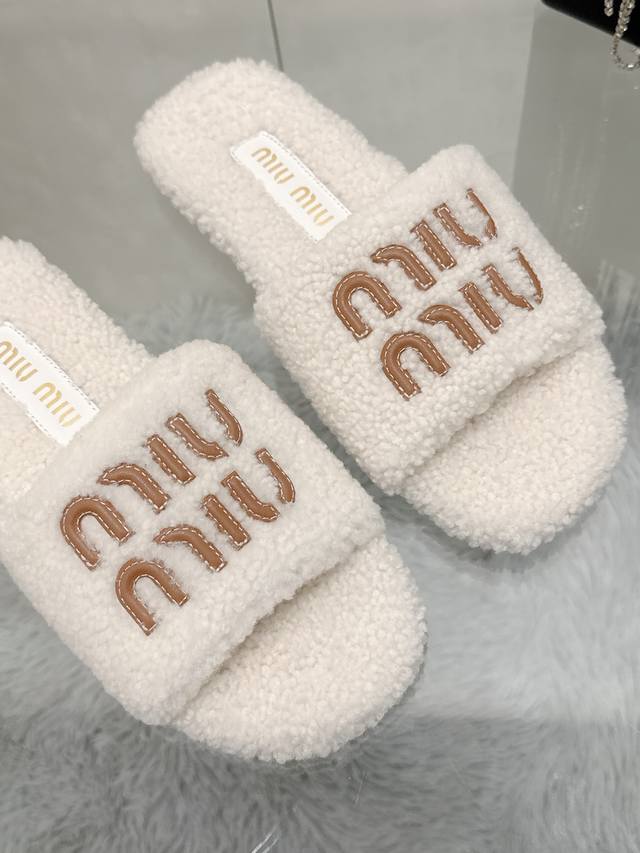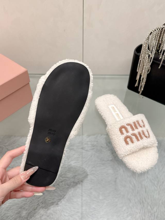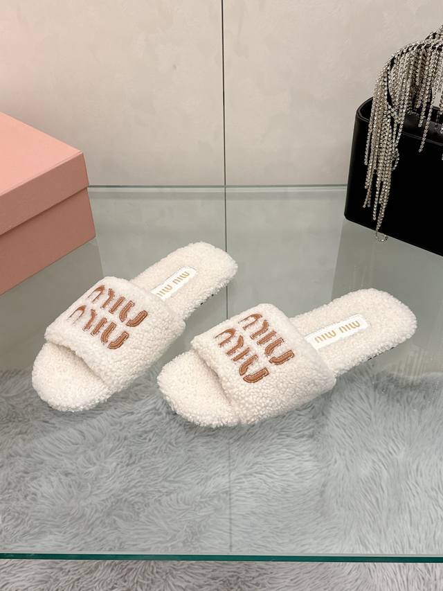 Factory Price: 100% Wool Miu Miu 2025 Latest Official Synchronized Wool Slippers. Original mold, surpassing all other versions on the market. A favorite of European and American socialites, celebrities, and influencers. Imported European Grade A wool, identical to the original. The entire shoe is made of pure wool. The upper and insole logo are made of mixed sheepskin. The outsole is made of the same TPU material as the original, wear-resistant and non-slip. Sizes: 35-40, 41 (custom orders are non-refundable).