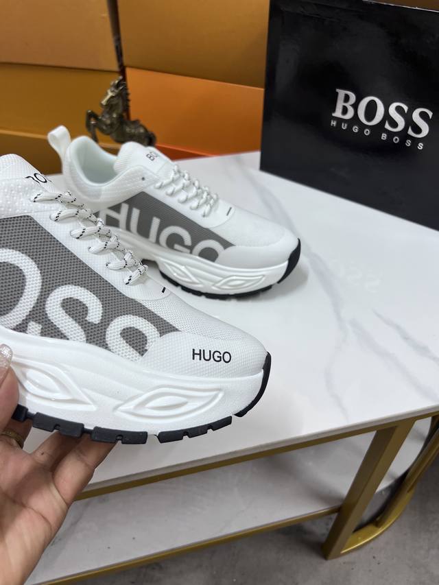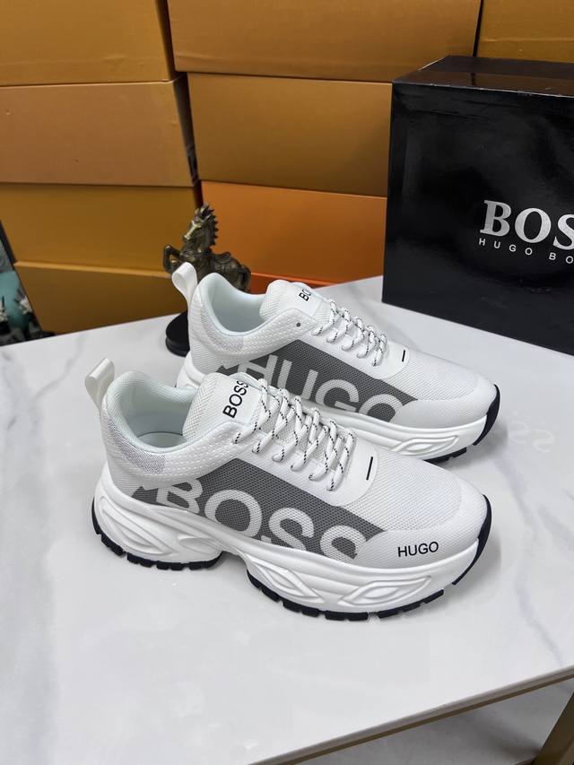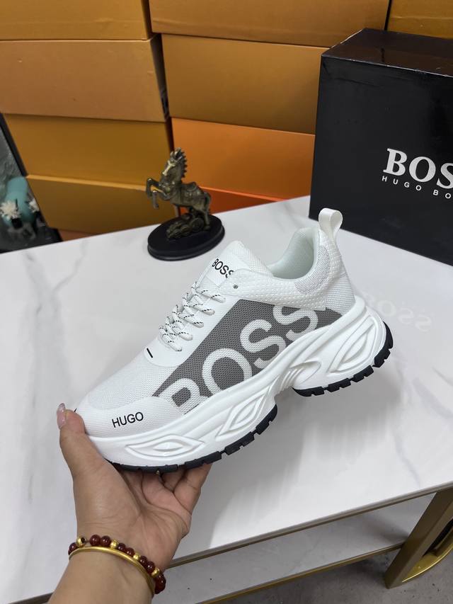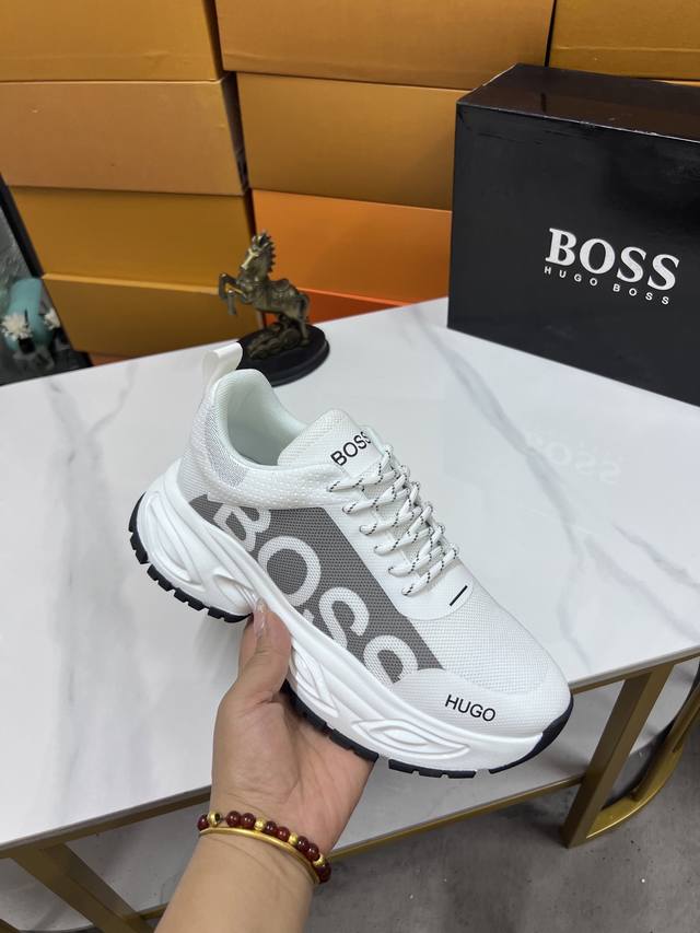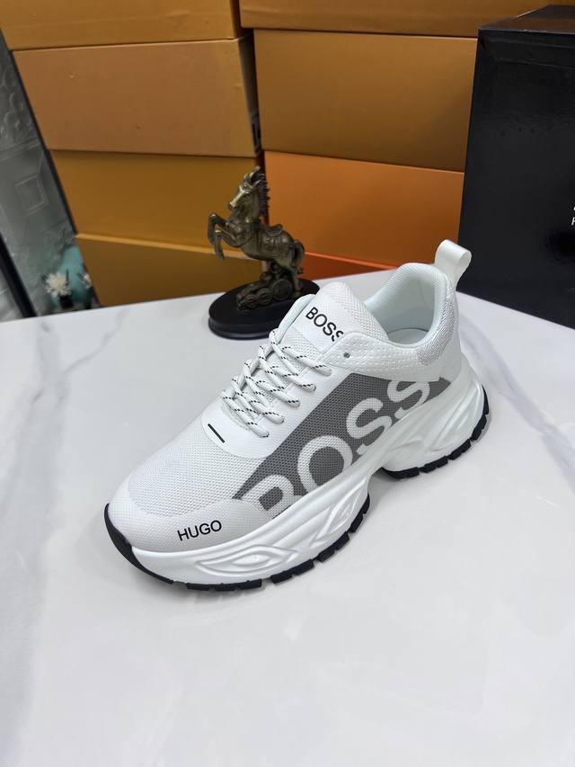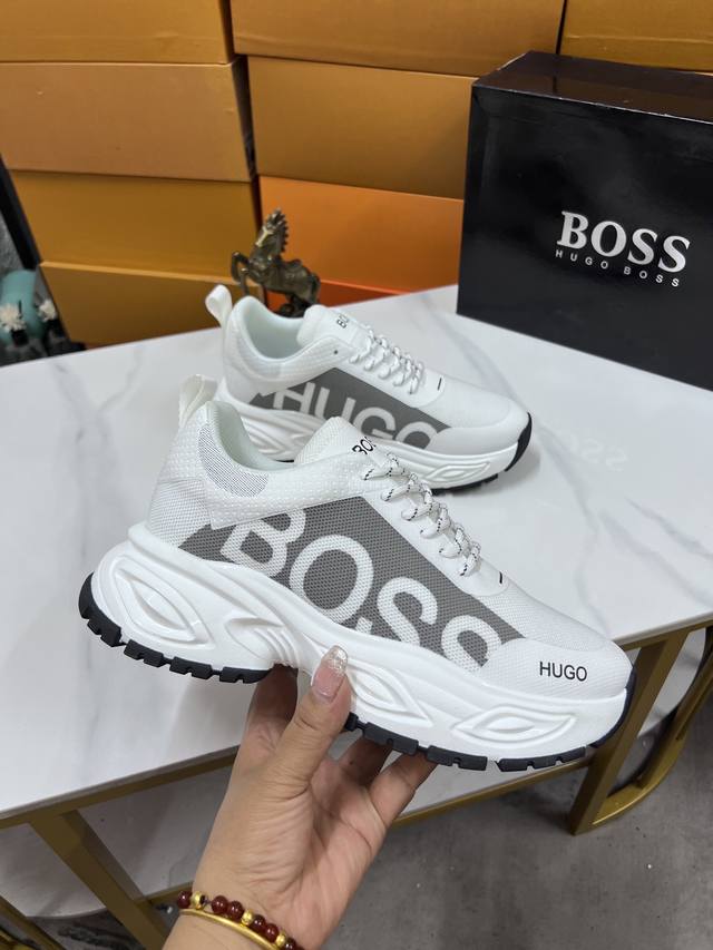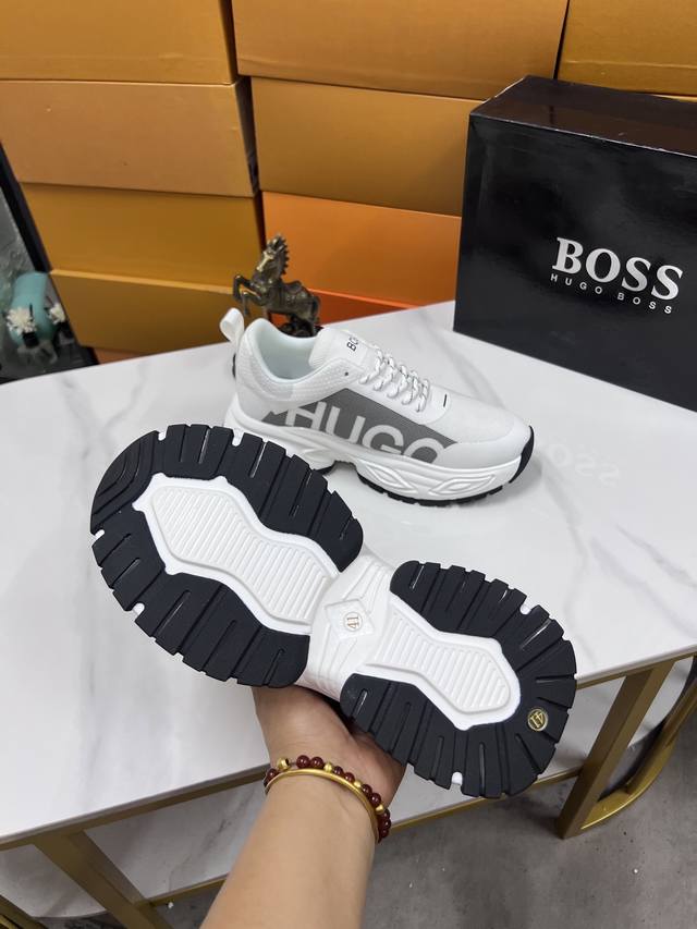 Factory price Boss latest casual men's shoes, welcome to compare 1:1, hot selling Boss Hong Kong counter casual shoes, counter quality, support inspection, high-quality workmanship, upper made of imported Italian fetal cowhide, breathable sheepskin lining, original fashion sports outsole, casual fashion, high-end quality, sizes: 38-44. Order 45 M