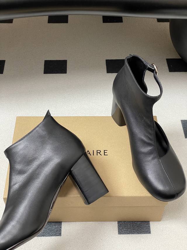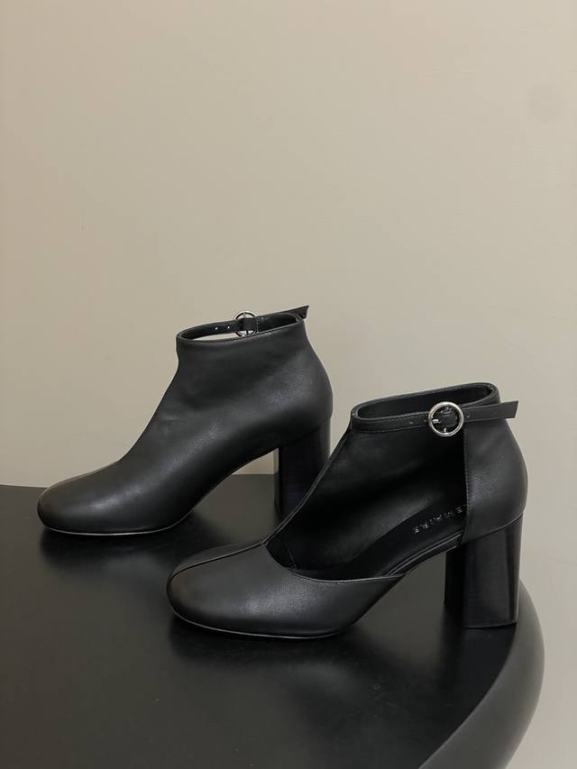 Factory Price - Ddd Lemaire 2026S Spring/Summer New Square Toe Chunky Heel Hollowed-out Ankle Boots, Unique High-Heeled Sandals. These boots feature a square toe and chunky heel, a fusion of ankle boot and low-cut shoe. The upper has a hollowed-out V-shaped cut, paired with a metal buckle at the heel. The lines are simple yet functional, and the chunky heel design balances stability and presence. The main colors are low-saturation milk tea brown and dark gray, classic minimalist color schemes. Continuing Lemaire's consistent minimalism and French relaxed style, the design emphasizes a balance between practicality and style, with details showcasing a niche, understated luxury feel. Upper: Calfskin; Insole: Sheepskin; Outsole: Italian genuine leather; Heel Height: 8cm; Sizes: 35-39; 40.41 Custom orders are non-refundable.
