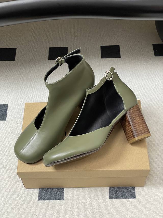 Factory Price - Ddd Lemaire 2026S Spring/Summer New Square Toe Chunky Heel Hollowed-out Ankle Boots, Unique High-Heeled Sandals. These boots feature a square toe and chunky heel, a fusion of ankle boot and low-cut shoe. The upper has a hollowed-out V-shaped cut, paired with a metal buckle at the heel. The lines are simple yet functional, and the chunky heel design balances stability and presence. The main colors are low-saturation milk tea brown and dark gray, classic minimalist color schemes. Continuing Lemaire's consistent minimalism and French relaxed style, the design emphasizes a balance between practicality and style, with details showcasing a niche, understated luxury feel. Upper: Calfskin; Insole: Sheepskin; Outsole: Italian genuine leather; Heel Height: 8cm; Sizes: 35-39; 40.41 Custom-made, no returns or exchanges.