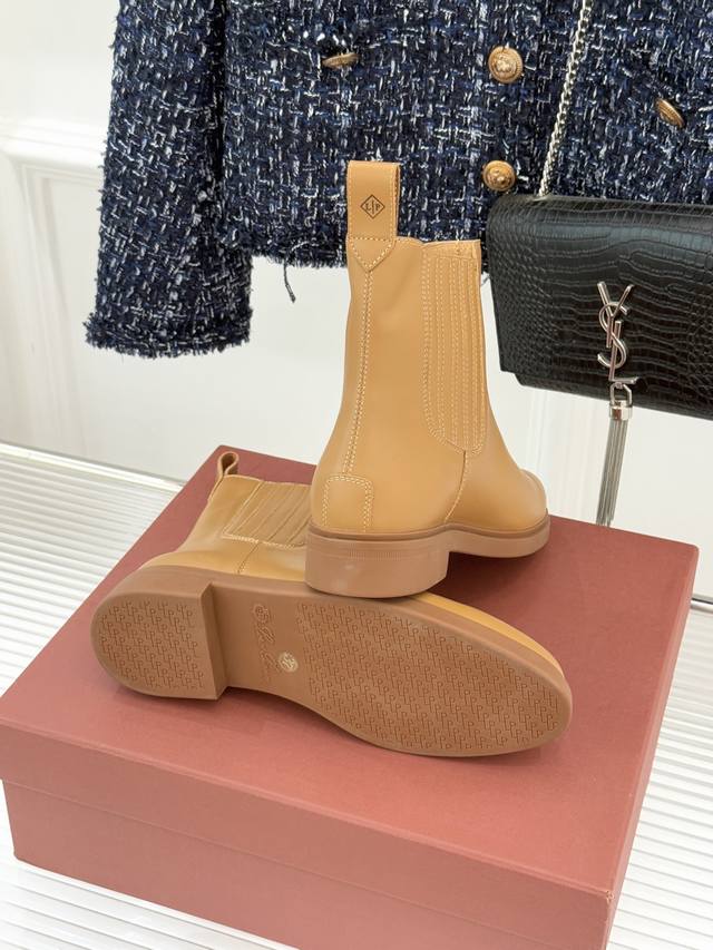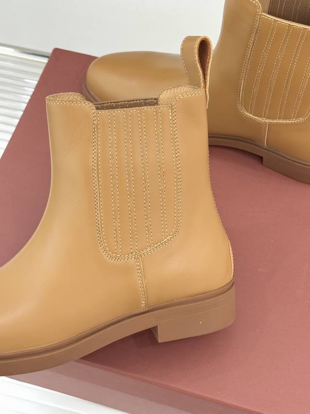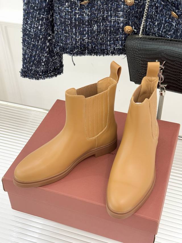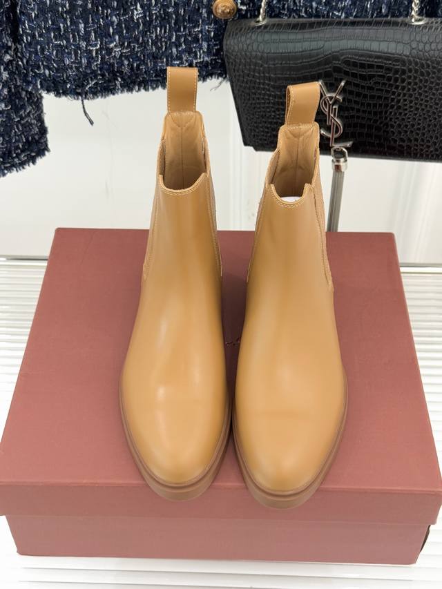 shoe silhouette continues the timeless shape of the Chelsea boot, with clean lines eliminating unnecessary embellishments. Only delicate, elastic side panels echo the classic design language. The rounded toe and ankle-hugging boot shaft balance comfort and a slimming effect, elongating the leg line. The upper is crafted from premium cowhide treated with natural wax, hand-finished for a warm sheen and natural texture, or from tumbled Rugged Calf leather, soft to the touch and possessing a timeless quality. The lightweight rubber sole, crafted with Italian craftsmanship, balances support and comfort at approximately 3cm thickness, with subtle stitching and delicate finishing concealing the craftsmanship. Just like the brand's "quiet power," it uses quality instead of symbols to express its message. The upper uses original custom leather, the lining is all cowhide, and the outsole is custom-made with original molds. Sizes: 35-39, 40, 41, 42 (custom sizes available).