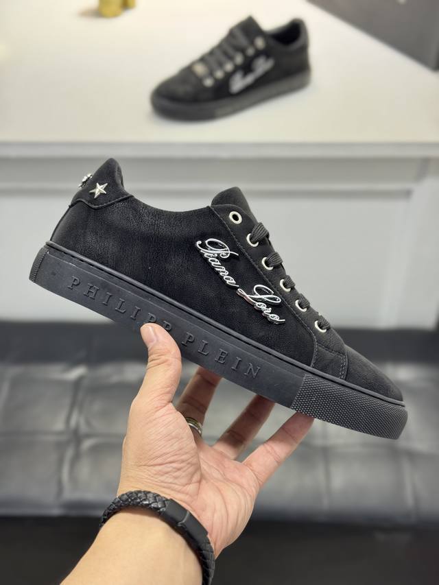 Factory price men's sports shoes original single Philipp Plein Ddd Plein trendy men's casual shoes. Based on classic design, these shoes feature a streamlined look. They are crafted with cowhide leather, hardware, and a sheepskin lining, creating a distinct layered effect that enhances their style and makes them incredibly durable. Sizes: 38-44 45 (custom sizes available).