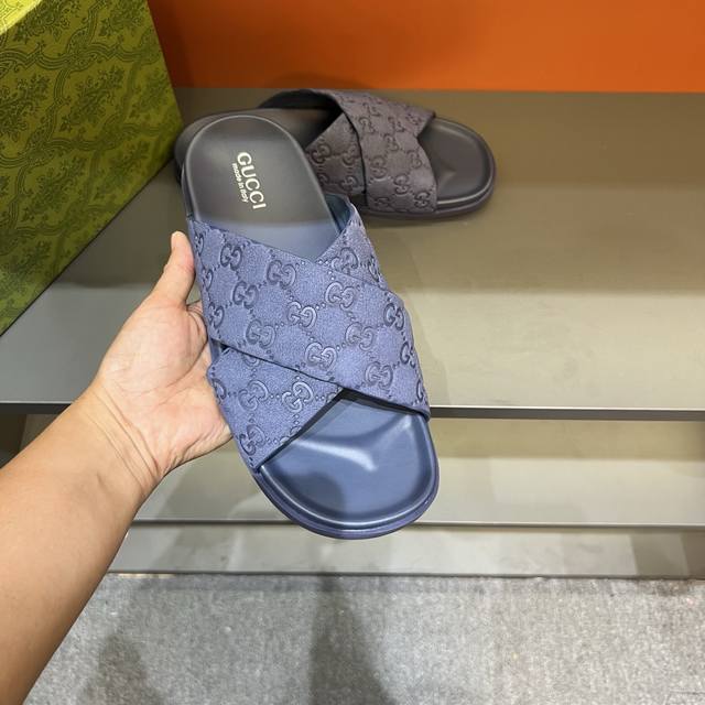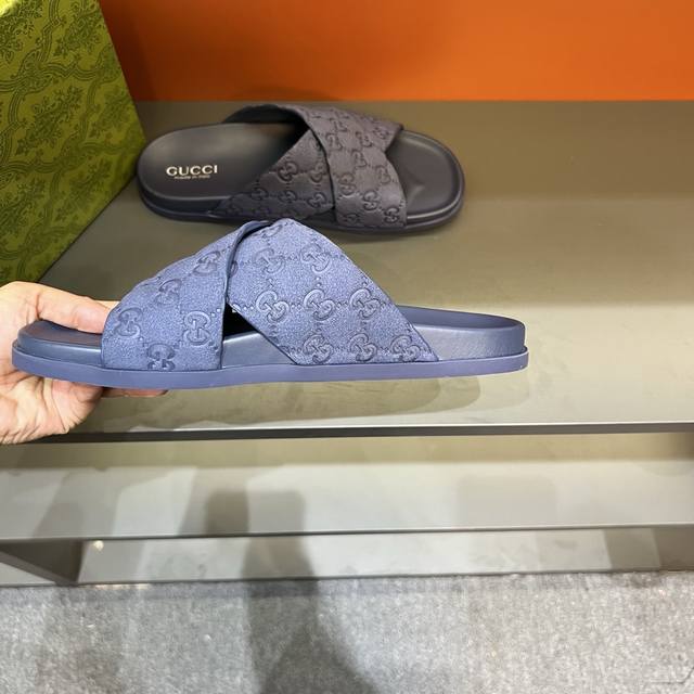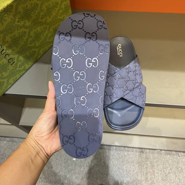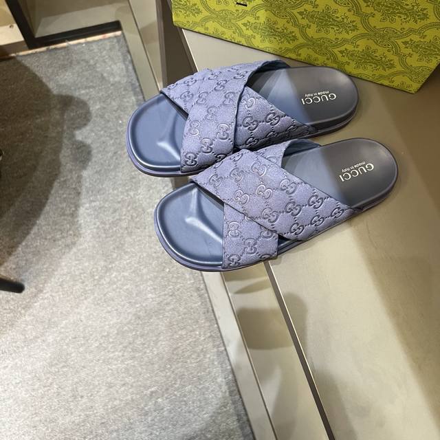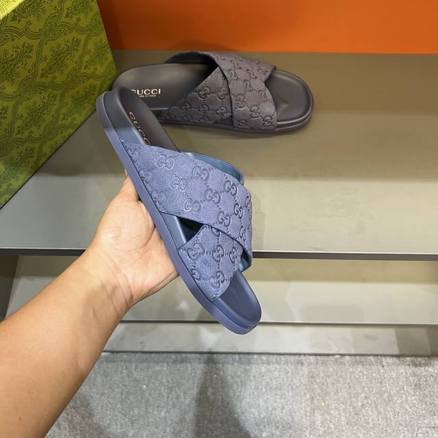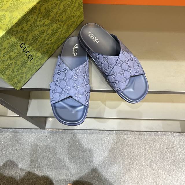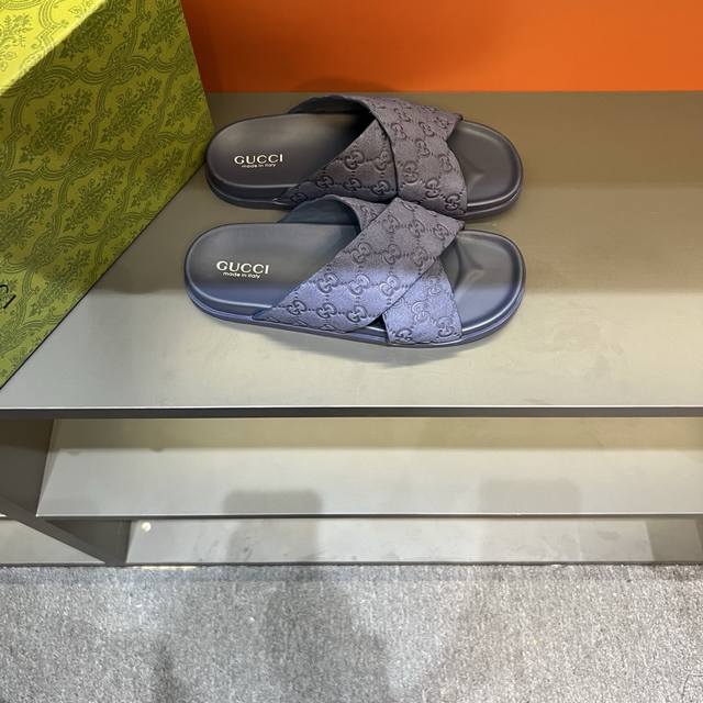 Factory Price Men's Sports Shoes, Original Sizes 38-46. GG High-End Men's Summer Slippers. Classic monogram series, single-strap loose design, unique color matching, distinctive personality, a must-have for fashion trends, lightweight and comfortable. Lightweight and resilient rubber insole, micro-embossed foam outsole, super comfortable feel!