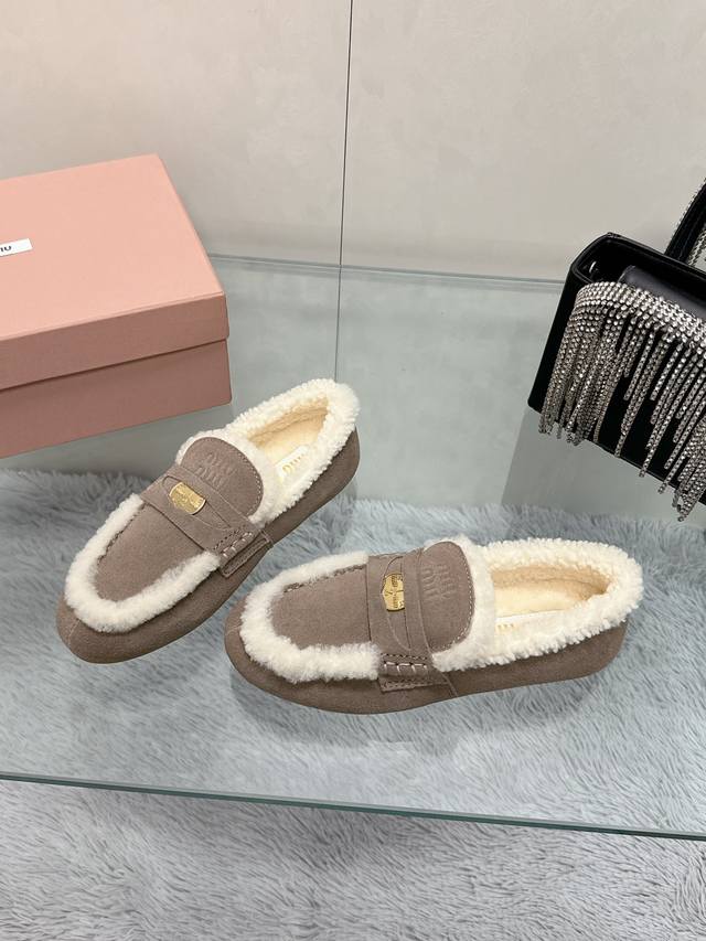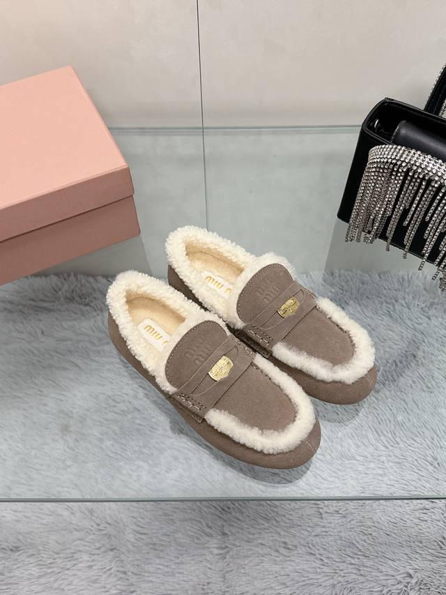 Factory Price: Miu Miu 2025 Newest Style Flat Moccasins, Retro Fashionable Simple High-End, Easy to Match, Very Comfortable, Super Heavy-Duty, Original Cow Suede Upper, Wool Lining, Original Outsole, Soft, Lightweight, Non-Slip and Wear-Resistant, Sizes 35-41, Size 41 Made to Order, No Returns or Exchanges.