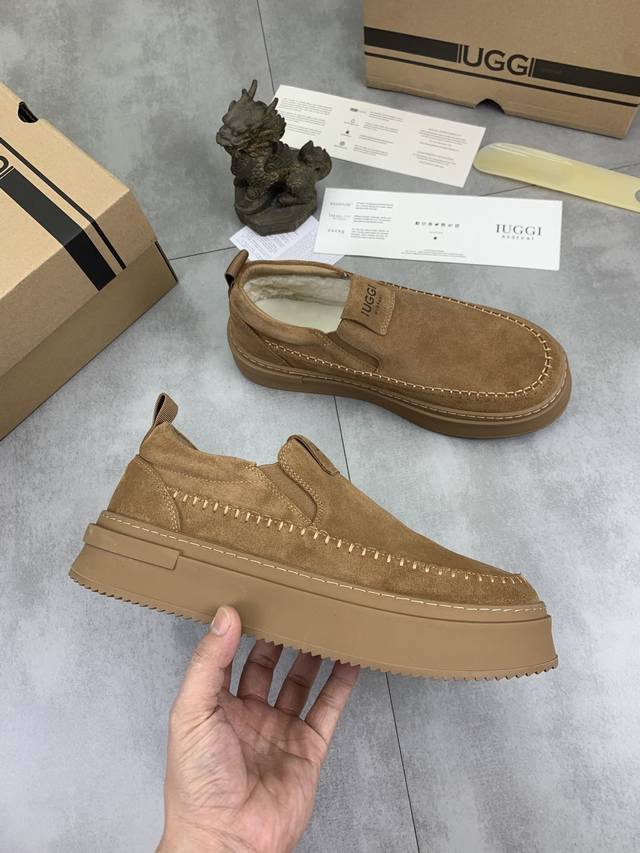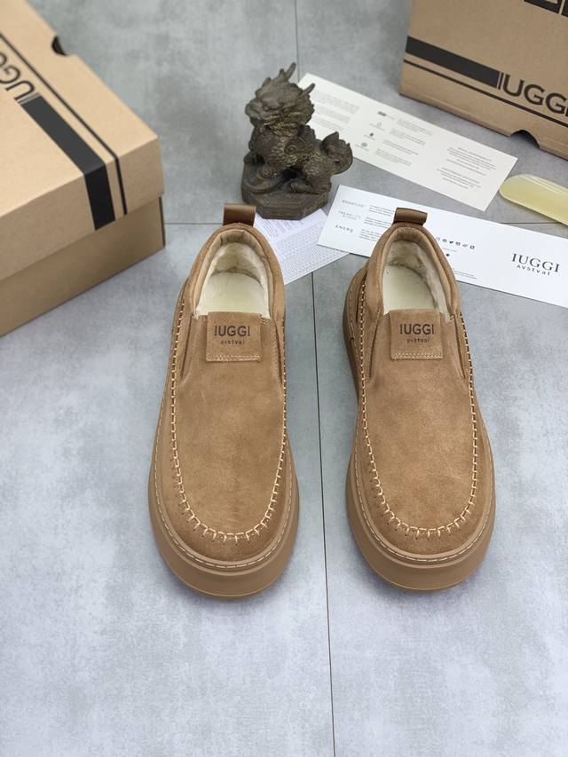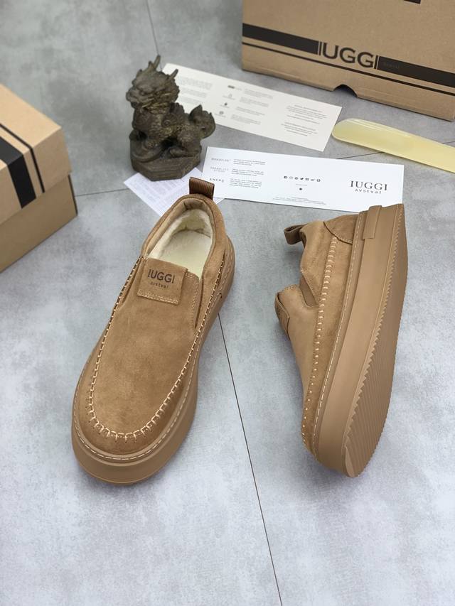 Factory price, new arrivals at a real price! Iuggi Men's Slip-on Loafers, British style, fashionable retro casual sneakers, convenient, comfortable, casual, and versatile. Comfortable and warm wool lining, non-slip and durable rubber outsole. Size: 39-44. Three colors available. 8731-8