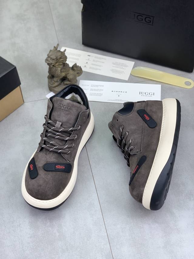 Factory price, new arrivals at a real price! Iuggi winter Q-version ugly-cute band-aid yellow boots, men's trendy brand suede genuine leather Martin boots, high-top thick-soled big toe shoes, original designer upturned toe boots, new winter retro men's shoes, trendy fashion thick-soled bread shoes, non-slip and wear-resistant. Sizes: 39-44.