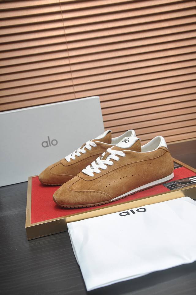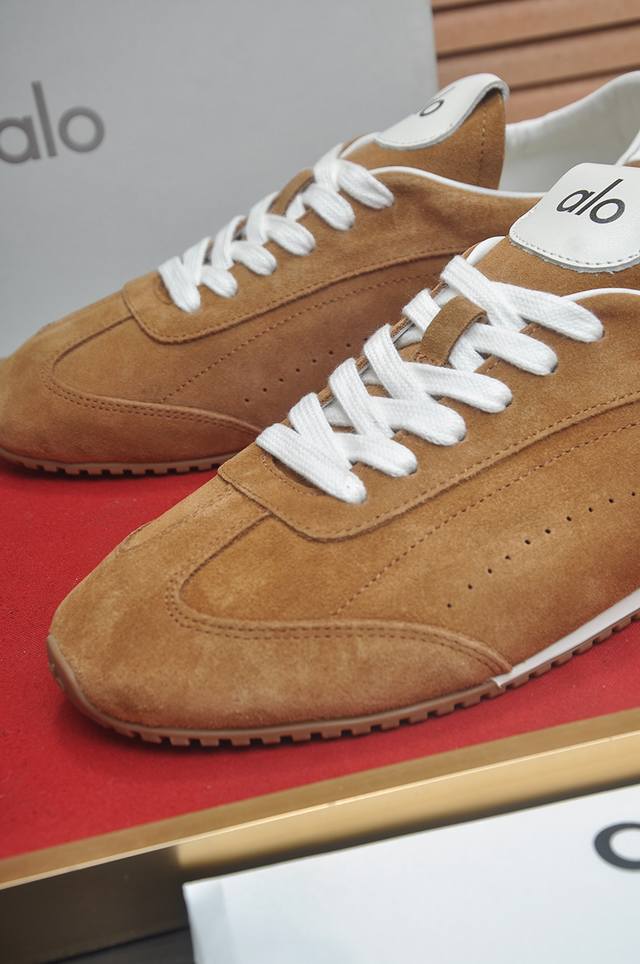 Factory Price p Alo Classic German Training Shoes for Couples, a hidden gem American brand. You'll know how much your feet deserve once you wear them. Features include imported cashmere upper, water-dyed cowhide lining, cowhide insole, official original glass glue outsole, exclusive original packaging, hangtag, brand paper box, and tote bag. Sizes: Women's 35-42, 41, 42 (custom orders accepted); Men's 38-45, 45 (custom orders accepted).