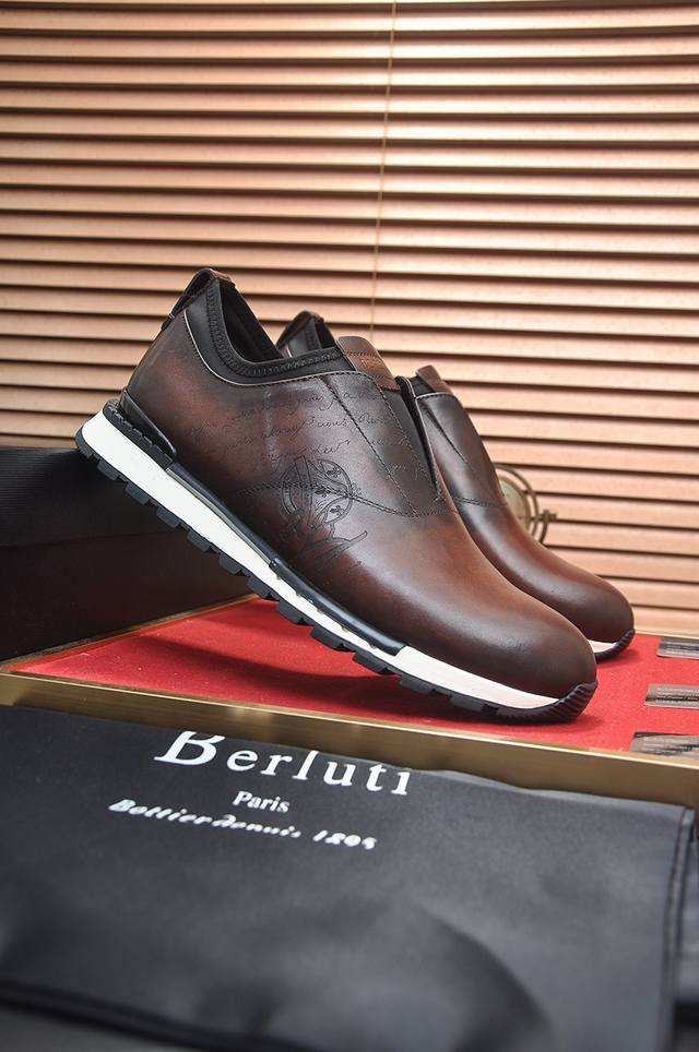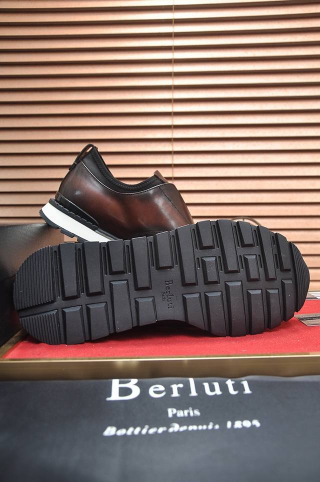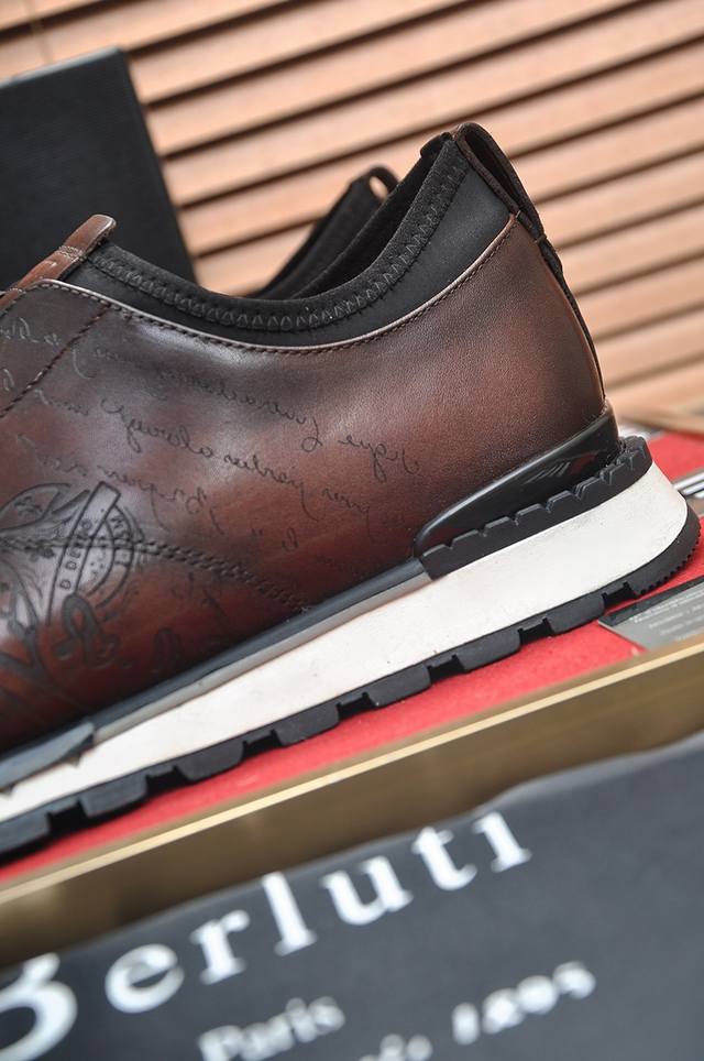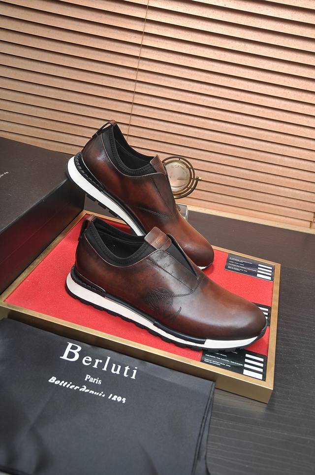 Factory Price P Berlut* Men's High-End Leather Shoes Official Latest Release Runway New Style. Imported cowhide leather lining, genuine calfskin leather outsole for lightweight comfort. Berlut* badge and logo prints capture visual attention, with three-dimensional embossed Scritto pattern. High-frequency air-pressure badge pattern showcases an extraordinary attitude! 39-44