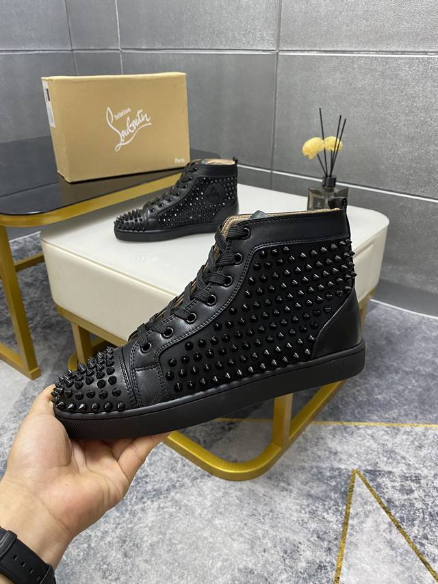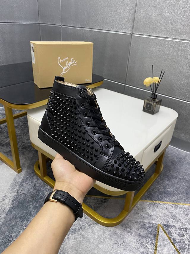 Factory Price p. Christian Louboutin Cl red-soled shoes, boutique rhinestone stud series, exclusive hot-selling casual sneakers for couples, latex insole, finished outsole with stitching, women's sizes 35-40, men's sizes 38-46, top-quality global supply: original imported cowhide upper, top-quality original leather lining, original mold TPU outsole, original 1:1 detail processing, original shoe last, large stock available. DDD