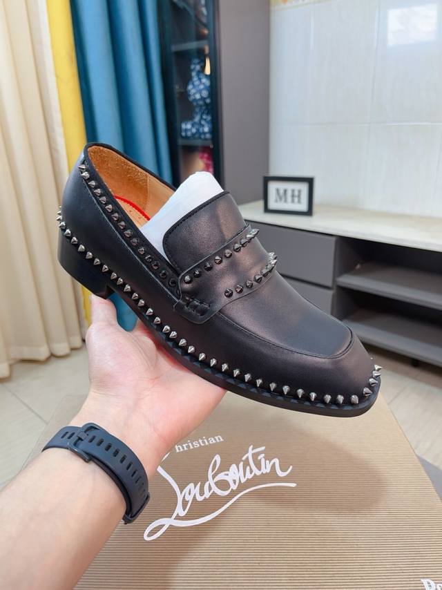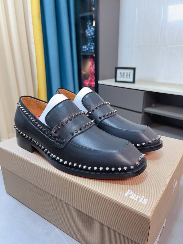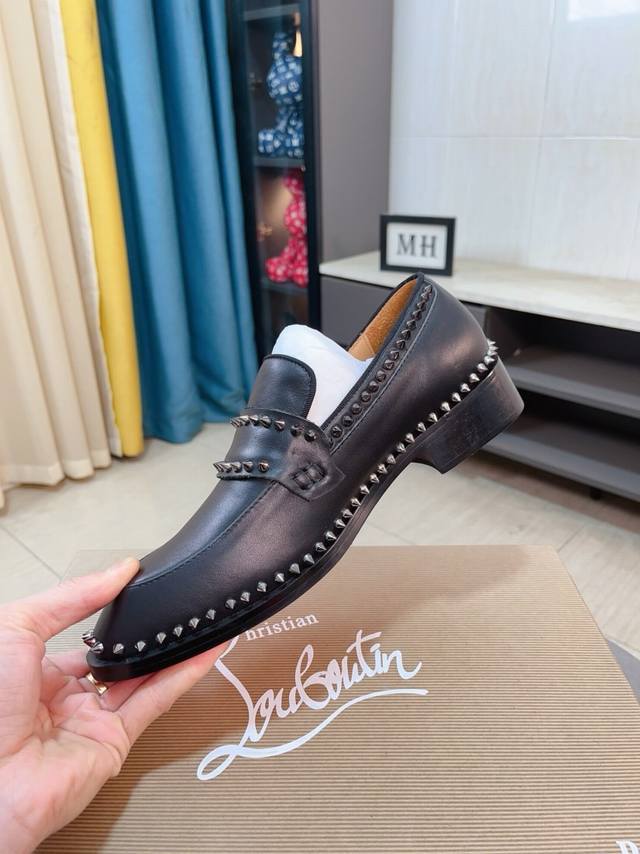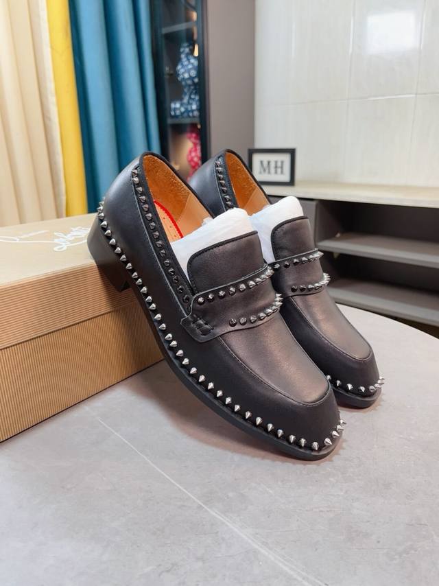 Factory Price p Cl New Formal Dress Shoes Christia* Loubouti* Red Sole Greggo Men's Oxford Shoes Official Price Made with imported cowhide, glossy patent leather patchwork, contrasting high-gloss suede, smooth small square toe design, iconic red outsole, extremely individualistic shoe style, original cowhide lining, Italian original leather outsole; exquisite workmanship brings you a luxurious experience, clean silhouette, and casual style. Greggo men's Oxford shoes are Oxford shoes born for urban wandering. Standard leather shoe sizes: 38