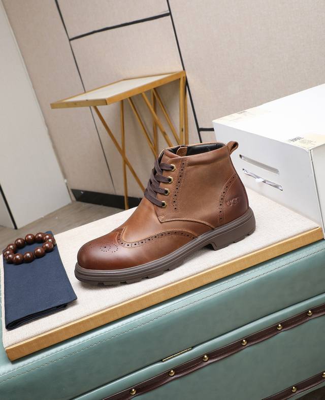 Factory Price P. Genuine wool lining, ten times compensation for fakes. Please note the original quality and thickness of the wool. Popular Ugg men's shoes from a warm, luxurious Australian brand, same as the official website, Beckham men's style... Made with imported top-grain waxed cowhide, with a waxed Australian genuine wool lining meticulously stitched... Imported rubber Martin boot sole, comfortable, soft, and wear-resistant, truly excellent quality... Exquisite workmanship, you'll love it at first sight. Sizes 39-44, 45 custom-made.