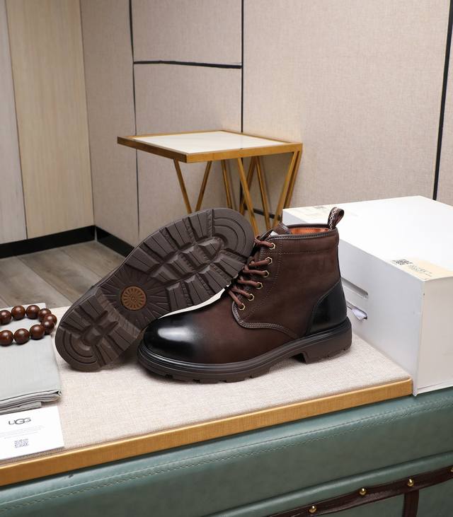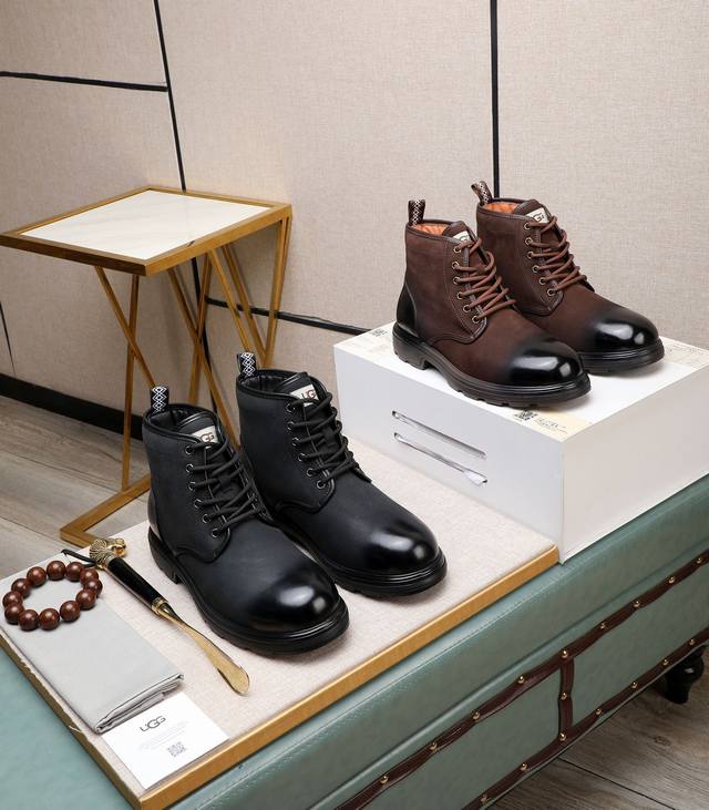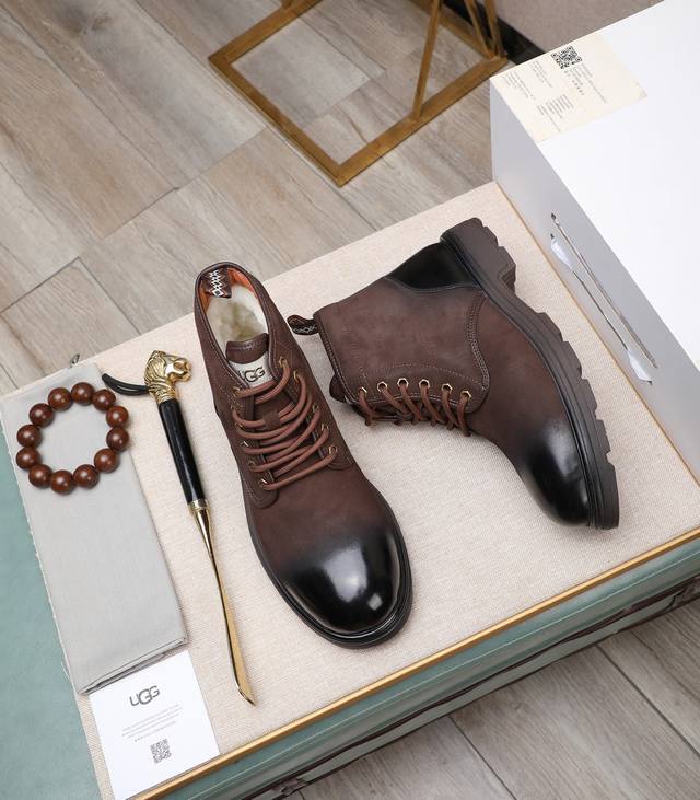 Factory Price P. Genuine wool lining, ten times compensation for fakes. Please note the original quality and thickness of the wool. Popular Ugg men's shoes from a warm, luxurious Australian brand, same as the official website, Beckham men's style... Made with imported top-grain waxed cowhide, with a waxed Australian genuine wool lining meticulously stitched... Imported rubber Martin boot sole, comfortable, soft, and wear-resistant, truly excellent quality... Exquisite workmanship, you'll love it at first sight. Sizes 38-44, 45 custom-made.
