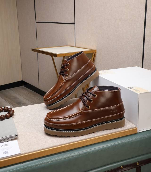 Factory Price P. Genuine wool lining, ten times compensation for fakes. Please note the original quality and thickness of the wool. Popular Ugg men's shoes from a warm, luxurious Australian brand, same as the official website, Beckham men's style... Made with imported top-grain waxed cowhide, with a waxed Australian genuine wool lining meticulously stitched... Imported rubber Martin boot sole, comfortable, soft, and wear-resistant, truly excellent quality... Exquisite workmanship, you'll love it at first sight. Sizes 38-44, 45 custom-made.