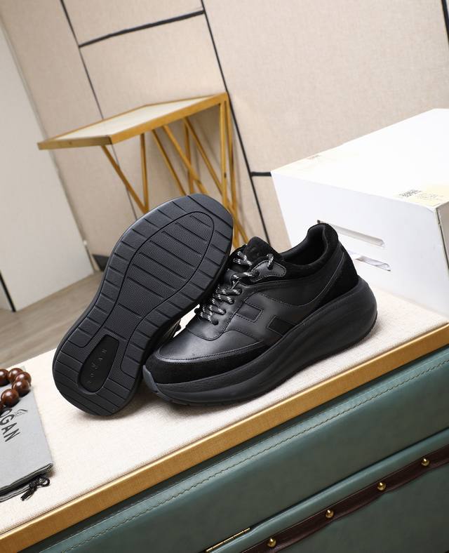 Factory Price P. Hogan's new style, exclusively 1:1 molded. The Hogan Chunky H696 series features exquisite design, sparkling imagination and showcasing a trendy style. The unique thick sole provides comfort and a tall, slender silhouette, depicting a new everyday look, writing a modern story, and triggering multifaceted inspiration. This athletic casual shoe is made of Nappa leather and suede, with a dynamic new design, rounded lines on the upper, and a large "H" letter embellishment on the side. The workmanship is exquisite and unique, and the memory foam insole is lightweight and comfortable. Sizes 35-40. [Important promotion: This image is guaranteed to be a hit!]
