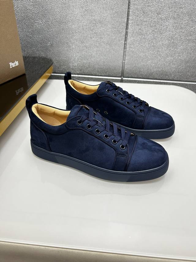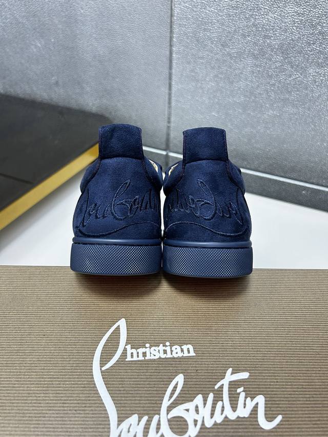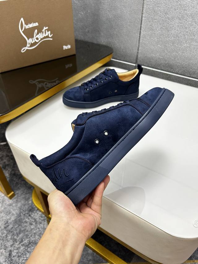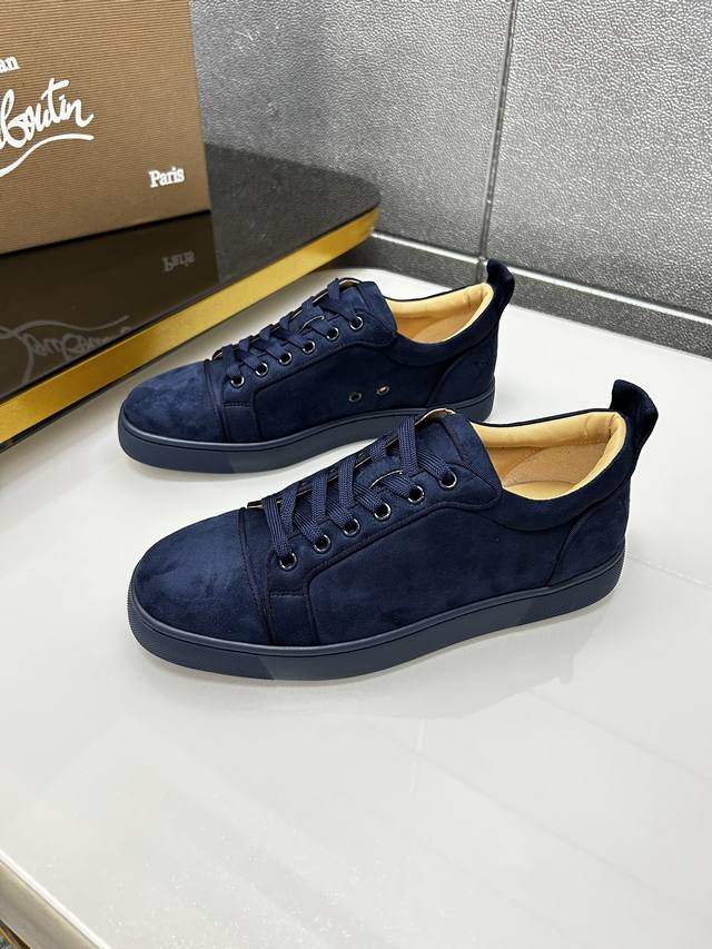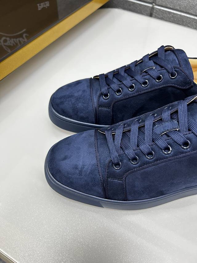 Factory price p In stock. Christian Louboutin Cl red-soled shoes, counter-made with hot rhinestone rivets, exclusive hot-selling couples' casual sneakers, latex insoles, finished outsole stitching, women's 35-40#, men's 38#-46#, global supply, premium edition: original imported cowhide upper, premium original leather lining, original molded TPU outsole, original 1:1 detailing, original shoe last,