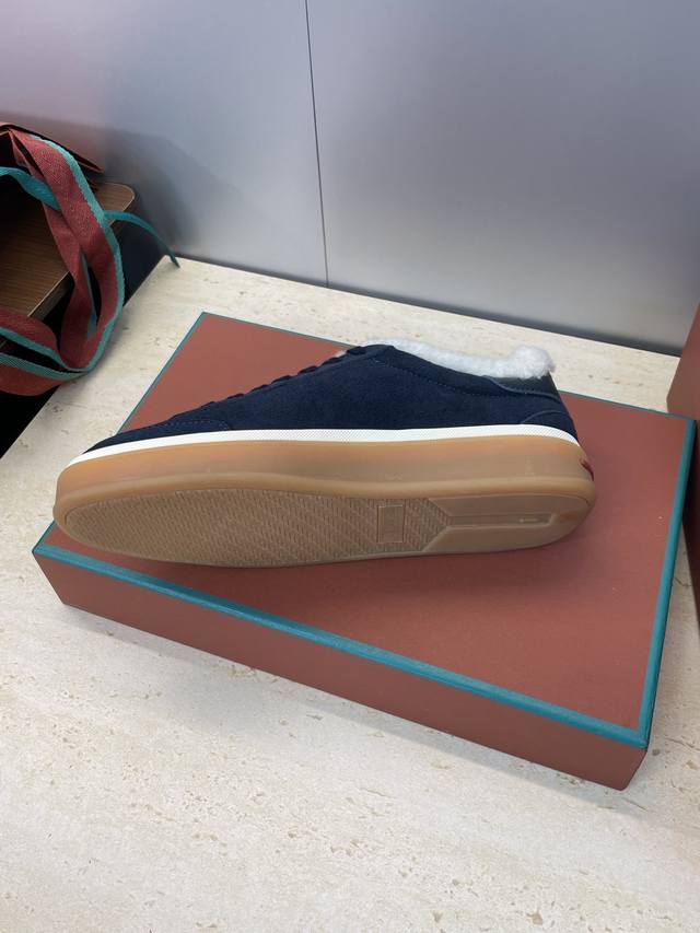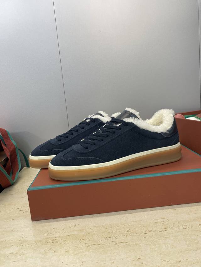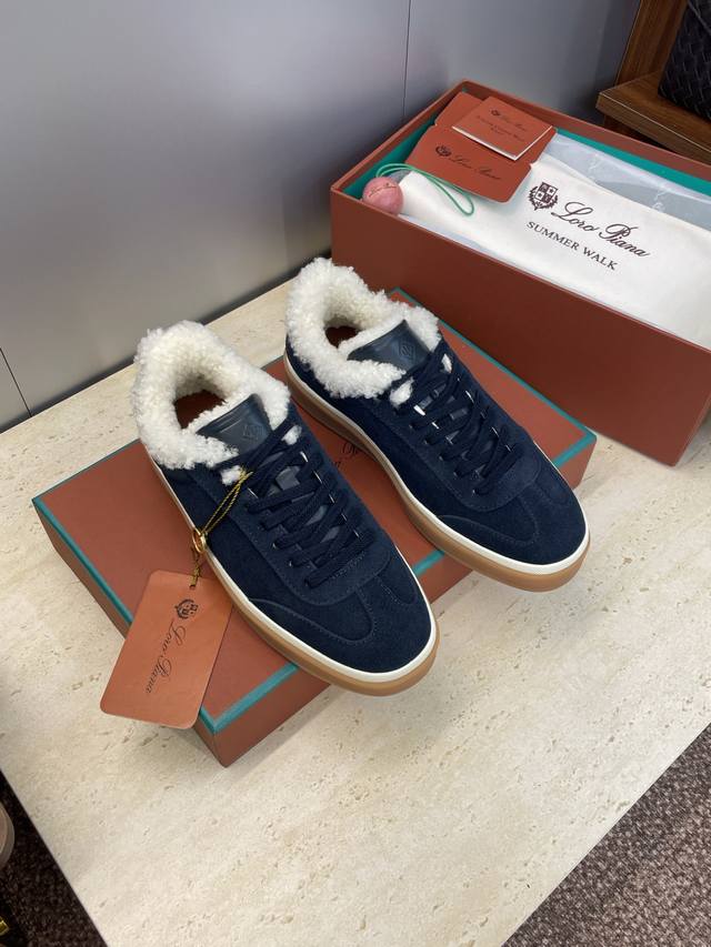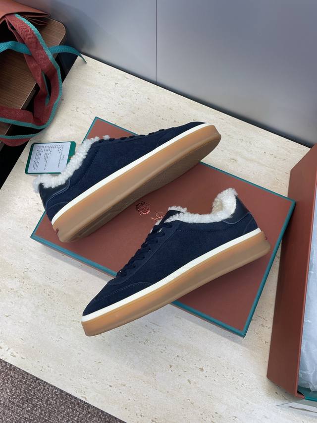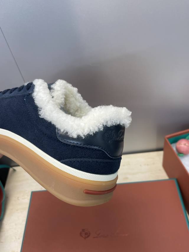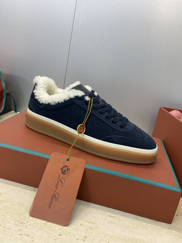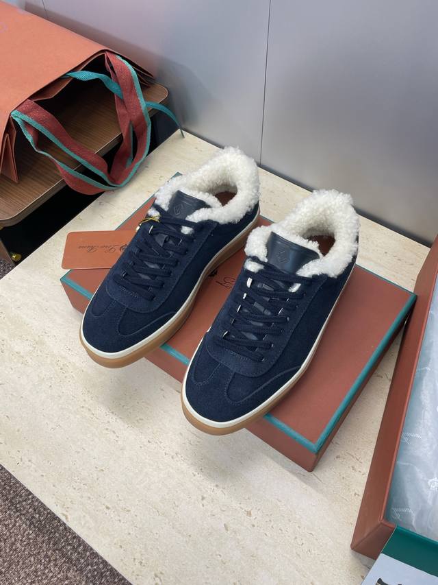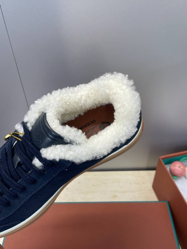 Loro Piana 2025 Autumn/Winter New Tennis Walk Series Couple Casual Lace-up German Training Shoes LP Flat Old Money Style Color Block Sports Skateboard Cold-proof Warm Lamb Wool Shoes
