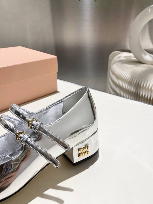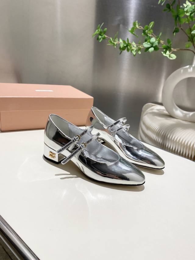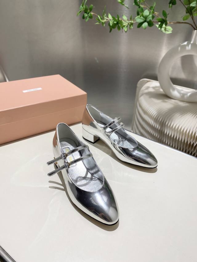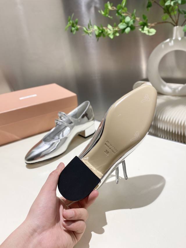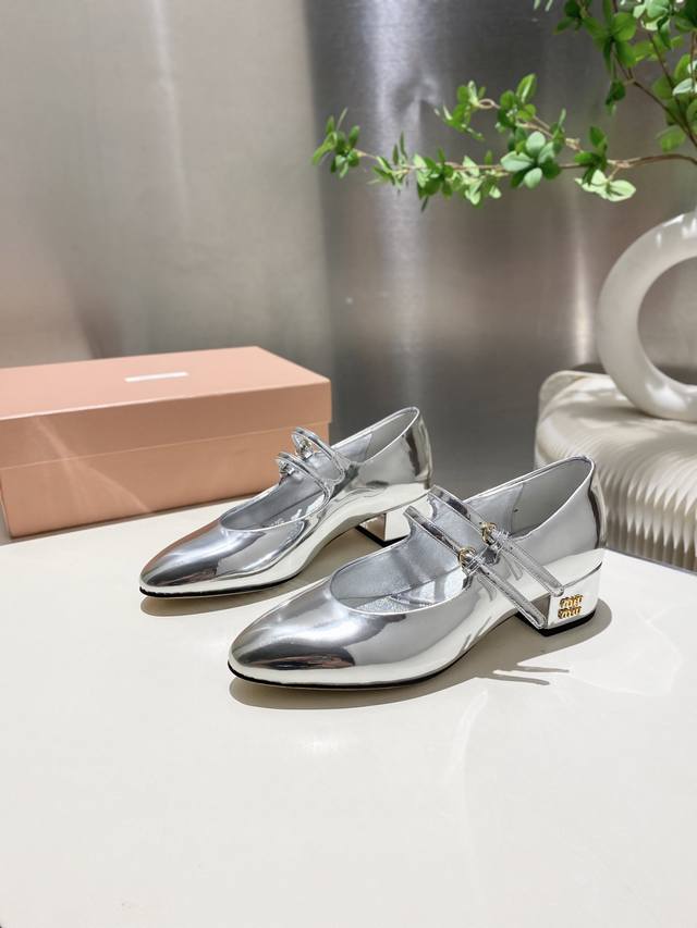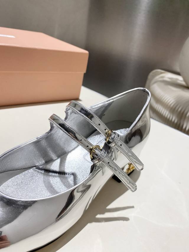 Factory price p Miu Miu 2025 autumn and winter new style upgraded craftsmanship to create fine products, with letter buckle decoration, super versatile classic fashion style is not so slim foot shape, more friendly to girls with high instep upper: imported cow patent leather lining: goatskin lining, outsole: imported Italian leather outsole, heel height: flat heel, 4.5cm size 5-9 4 size 40.41 size custom
