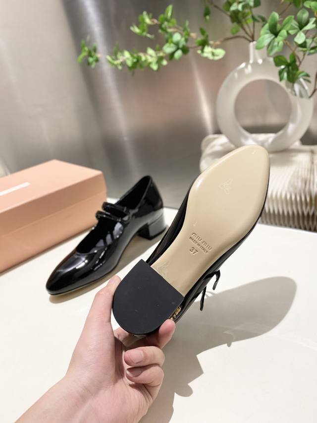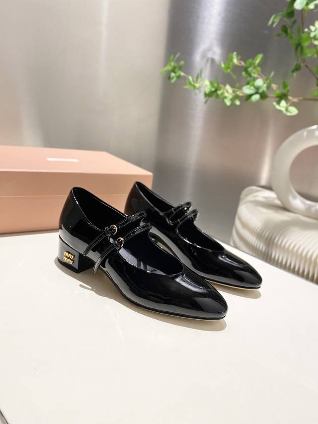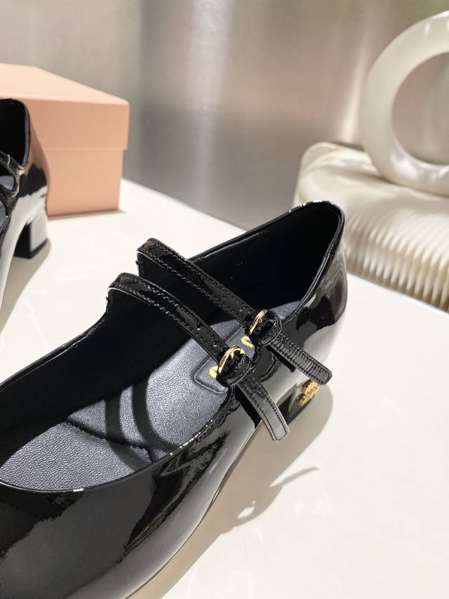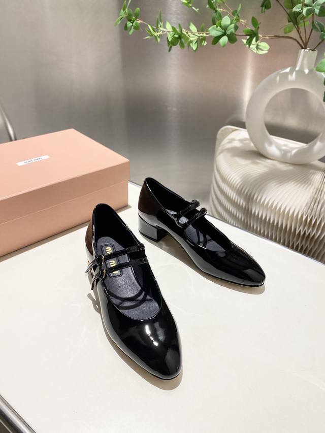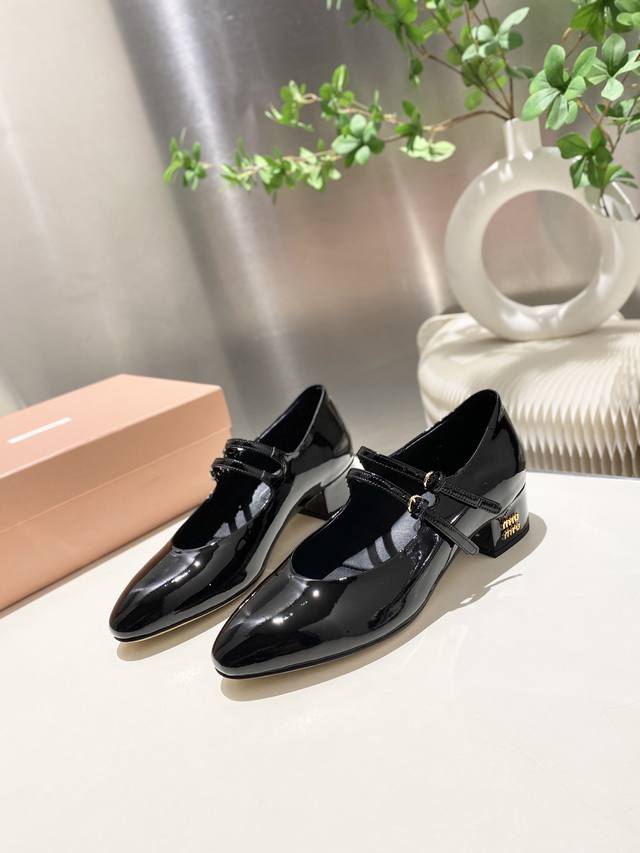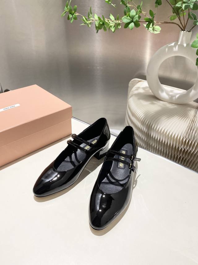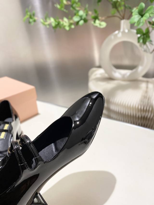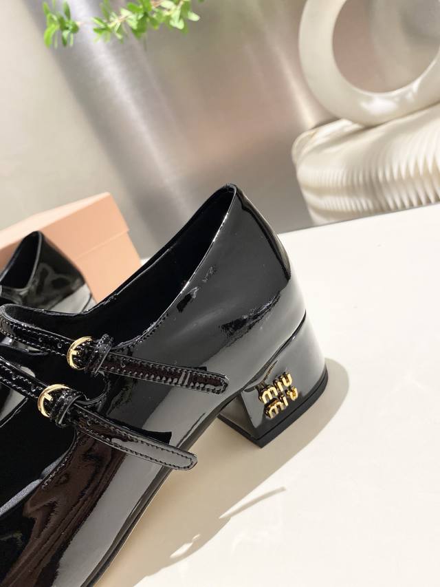 Factory Price p Miu Miu 2025 Autumn/Winter New Style Upgraded Craftsmanship, featuring letter buckle decoration, super versatile classic fashion style. More flattering for those with higher insteps than slender feet. Upper: Imported cow patent leather; Lining: Goatskin lining; Outsole: Italian imported genuine leather; Heel height: Flat heel, 4.5cm. Sizes 5-9, Sizes 40 and 41 are available for custom orders.