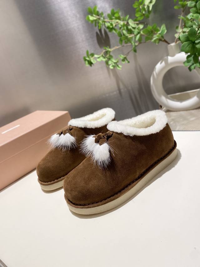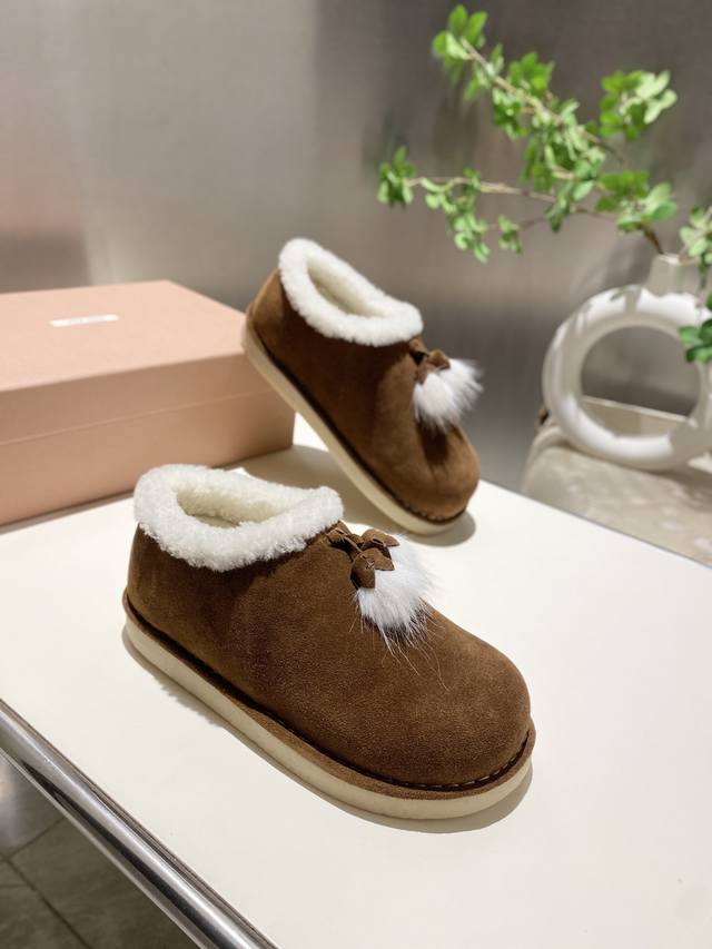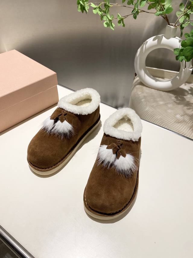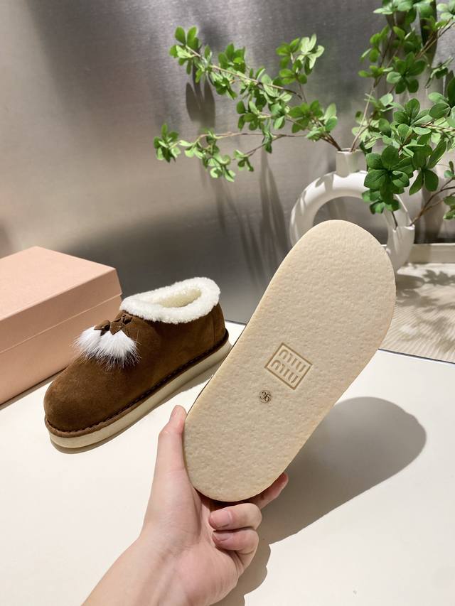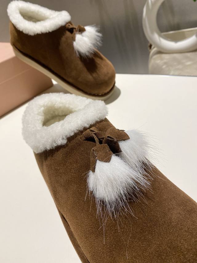 Factory Price p Miu Miu 2025 Fall/Winter Runway New Snow Boots. The most worthwhile boots to buy this year, bar none! Adorned by numerous internet celebrities and stars, this Miu Miu Fall/Winter limited edition is extremely difficult to find in stores. It looks stiff, but it's actually incredibly soft and comfortable! Superb feel! The wide boot shaft provides a relaxed fit regardless of leg size and makes legs appear straight! Full of punk style ! Material: Italian imported high-gloss cow suede. Lining: Wool lining. Outsole: Italian one-piece molded outsole. Available in 4 colors, sizes 35-42, 40, 41, 42. Custom orders are non-refundable and non-exchangeable.