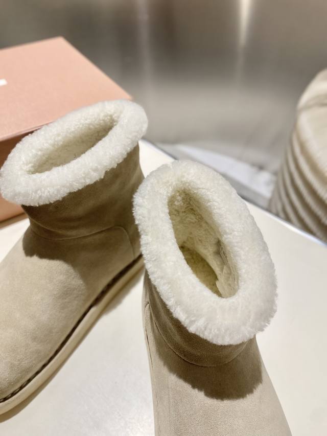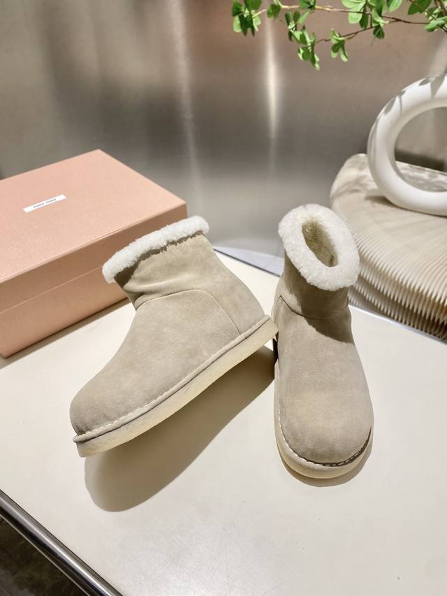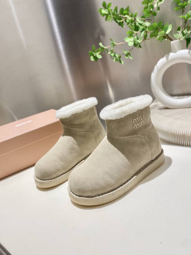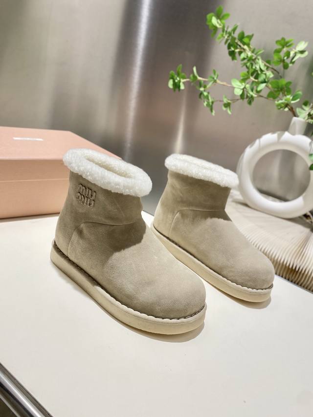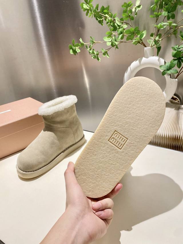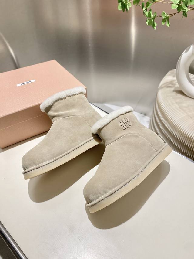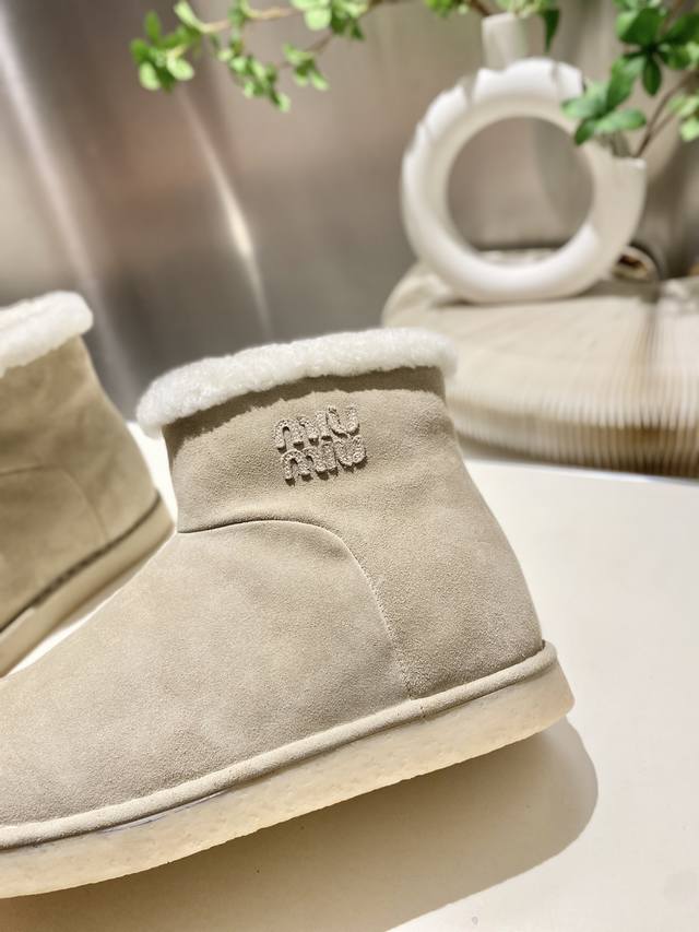 Factory Price p Miu Miu 2025 Fall/Winter Runway New Snow Boots. The most worthwhile boots to buy this year, bar none! Adorned by numerous internet celebrities and stars, this Miu Miu Fall/Winter limited edition is extremely difficult to find in stores. It looks stiff, but it's actually incredibly soft and comfortable! Superb feel! The wide boot shaft provides a relaxed fit regardless of leg size and makes legs appear straight! Full of punk style! Material: Italian imported high-gloss cow suede. Lining: Wool lining. Outsole: Italian one-piece molded outsole. Available in 4 colors, sizes 35-42, 40, 41, 42. Custom orders are non-refundable and non-exchangeable.
