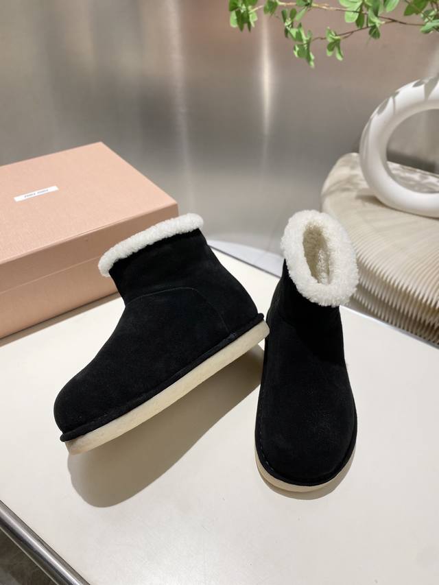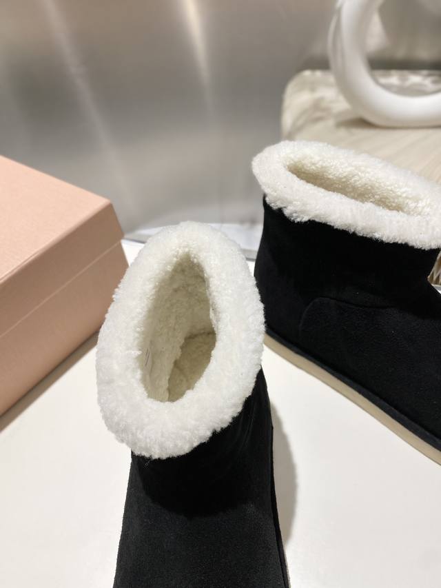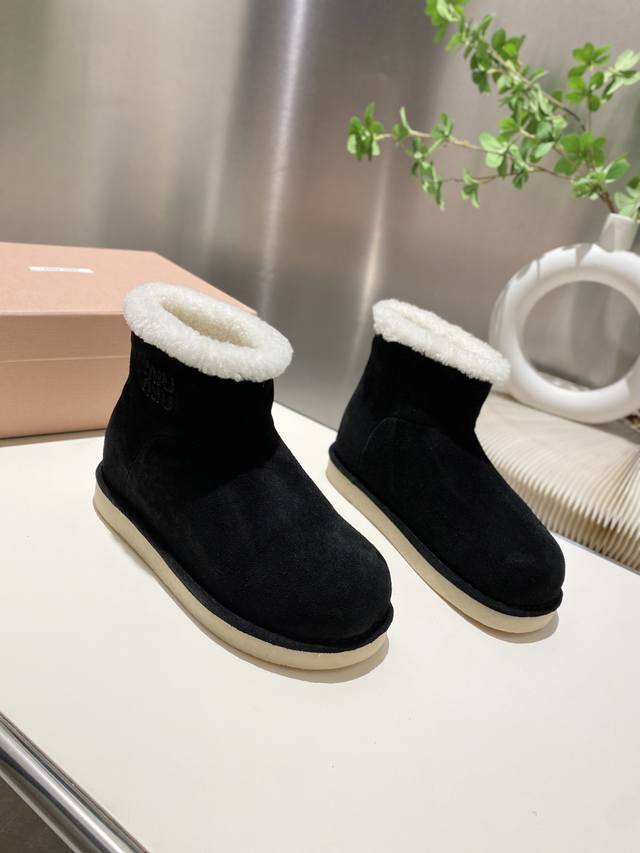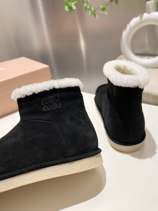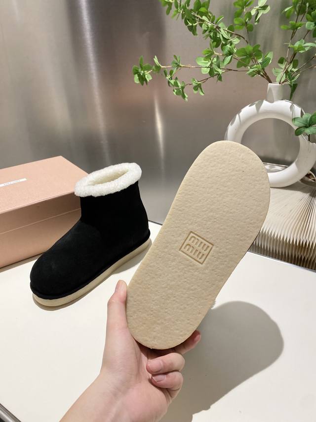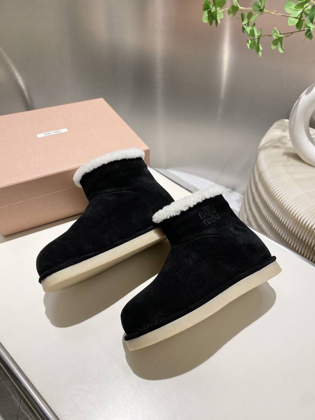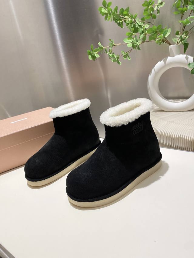 Factory Price p Miu Miu 2025 Fall/Winter Runway New Snow Boots. The most worthwhile boots to buy this year, bar none! Adorned by numerous internet celebrities and stars, this Miu Miu Fall/Winter limited edition is extremely difficult to find in stores. It looks stiff, but it's actually incredibly soft and comfortable! Super comfortable! The wide boot shaft provides a relaxed feel regardless of leg size and makes legs appear straight! Full of punk style! Material: Italian imported high-gloss cow suede. Lining: Wool lining. Outsole: Italian one-piece molded outsole. Available in 4 colors, sizes 35-42, 40, 41, 42. Custom orders are non-refundable and non-exchangeable.