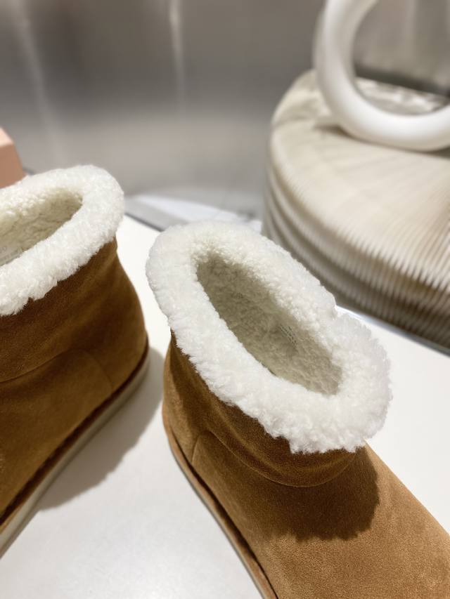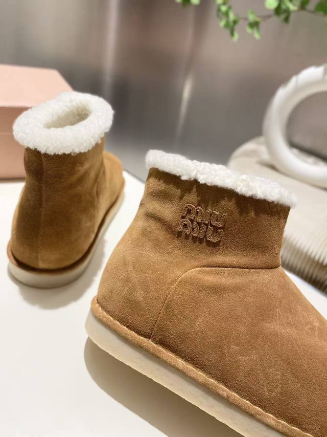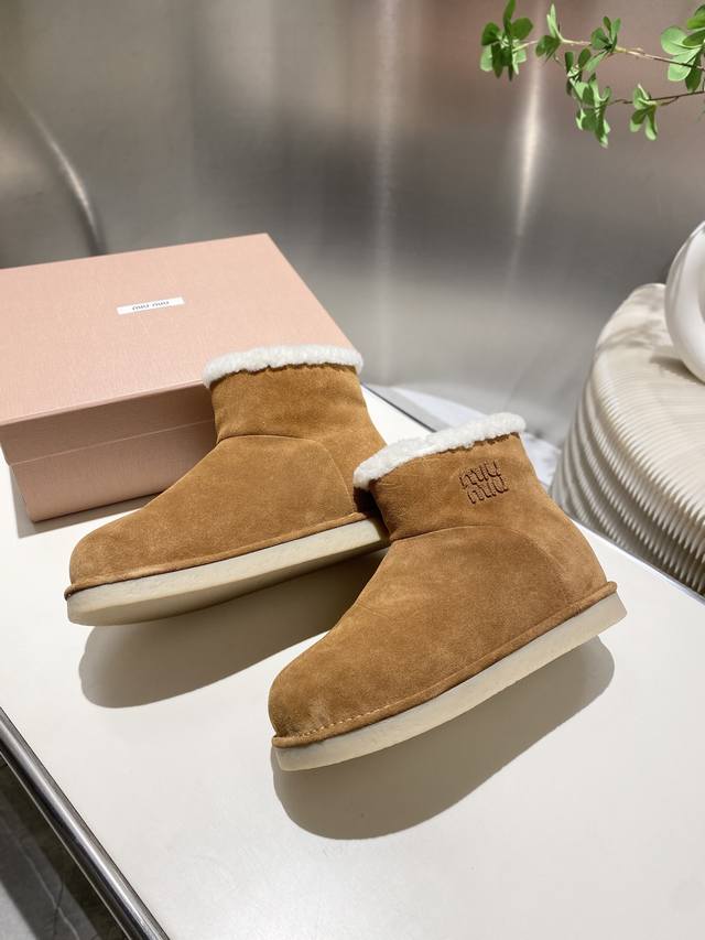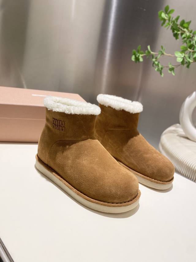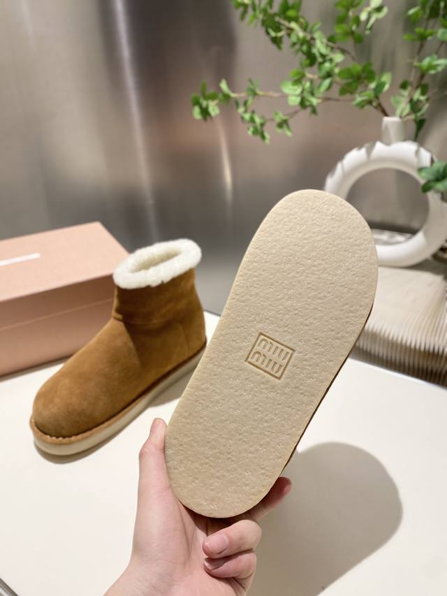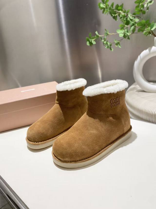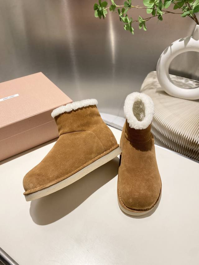 Factory Price p Miu Miu 2025 Fall/Winter Runway New Snow Boots. The most worthwhile boots to buy this year, bar none! Adorned by numerous internet celebrities and stars, this Miu Miu Fall/Winter limited edition is extremely difficult to find in stores. It looks stiff, but it's actually incredibly soft and comfortable! Superb feel! The wide boot shaft provides a relaxed fit regardless of leg size and makes legs appear straight! Full of punk style! Material: Italian imported high-gloss cow suede. Lining: Wool lining. Outsole: Italian one-piece molded outsole. Available in 4 colors, sizes 35-42, 40, 41, 42. Custom orders are non-refundable and non-exchangeable.