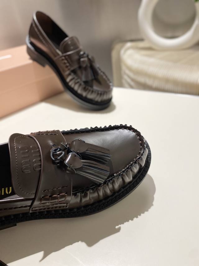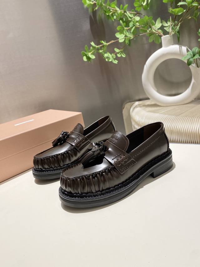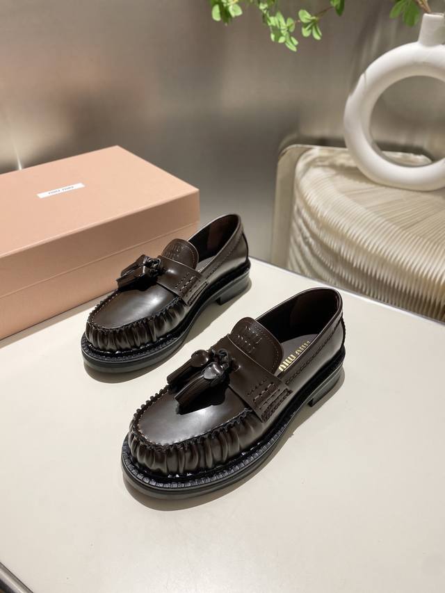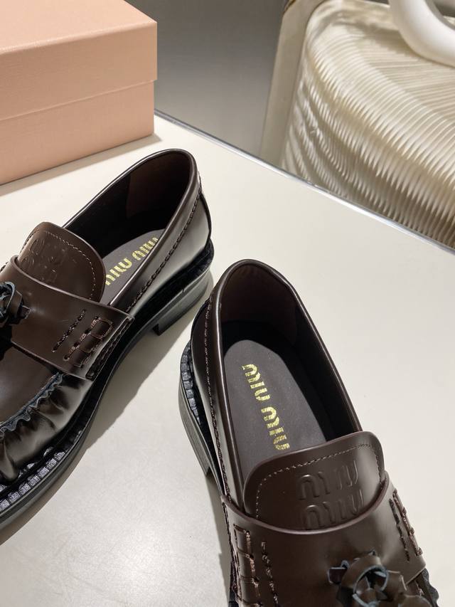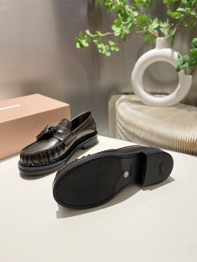 Factory Price p Miu Miu 2025 Runway New Tassel-Embellished Motorcycle Shoes Slip-on Loafers Casual Shoes DDD This timeless calfskin loafer features an embossed Miu logo on the tongue, showcasing a unique classic style. The toe cap is adorned with leather trim and distinctive tassel trim~ DDD Very comfortable to wear Zp developed hardware, custom colors DDD Upper: Custom imported top-grain cowhide DDD Lining: Cowhide DDD Sole: Zp molded rubber outsole DDD Sizes: 35-42 40, 41, 42 custom DDD