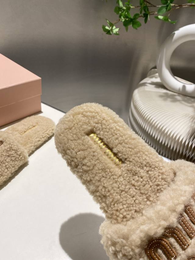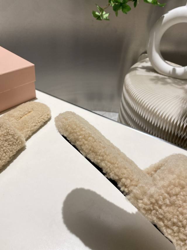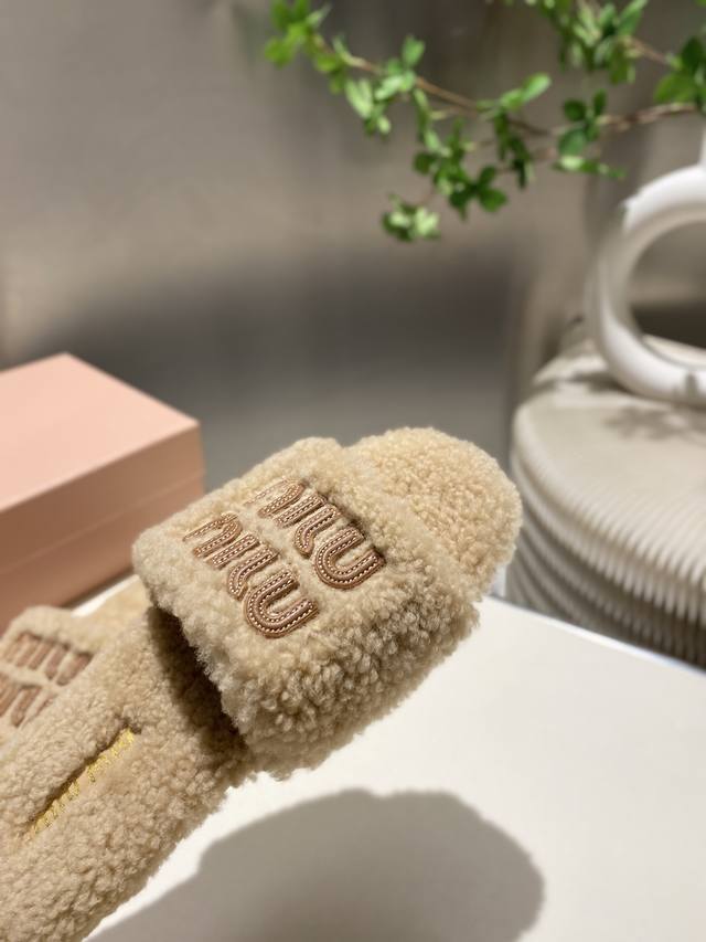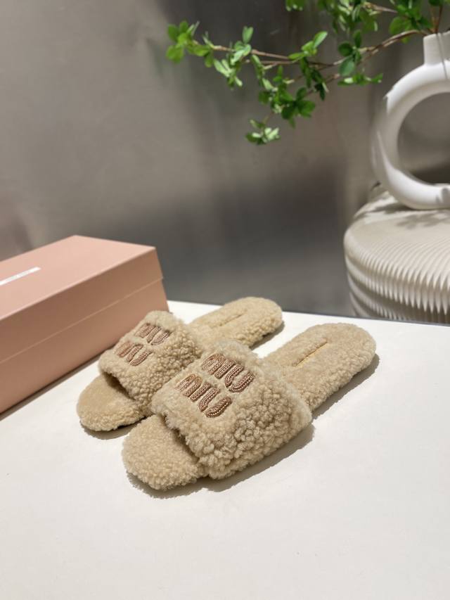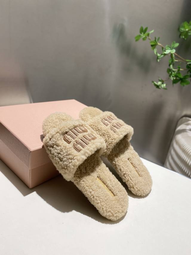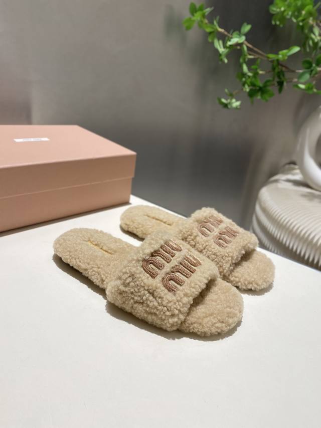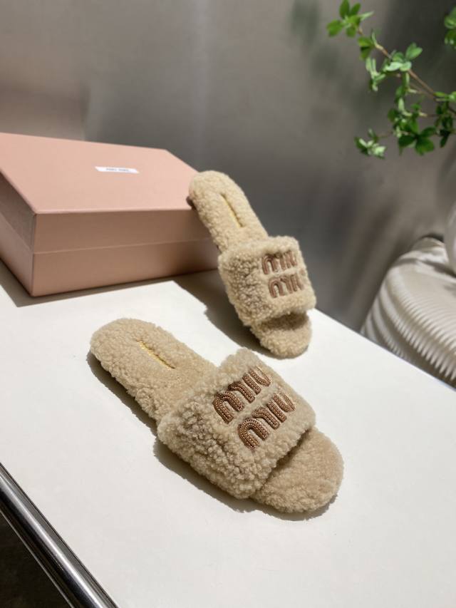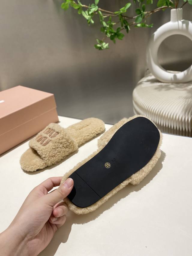 Factory Price p Miu Miu Top-Tier Version DDD 2025 Autumn/Winter Trendy Furry Slippers! 1:1 Mold Opening, Outshining All Other Versions on the Market. A Favorite Among European and American Socialites, Celebrities, and Influencers. Made with Imported Icelandic Wool, this single-color wool slipper is fluffy, soft, and skin-friendly. A winter essential with fashionable elements, the upper exudes a luxurious feel. Wearing it always showcases a woman's fashionable charm