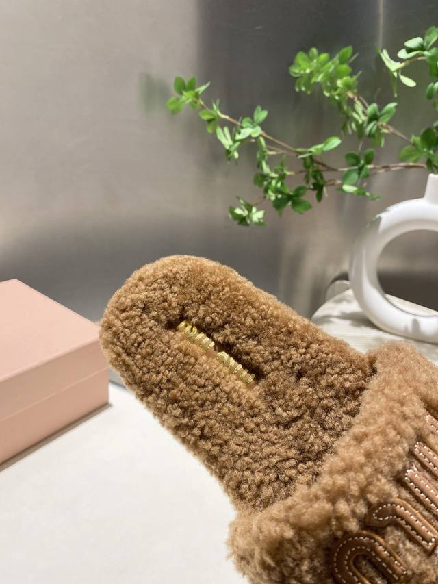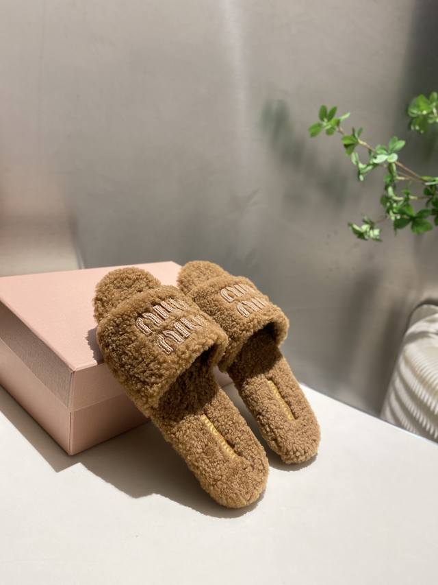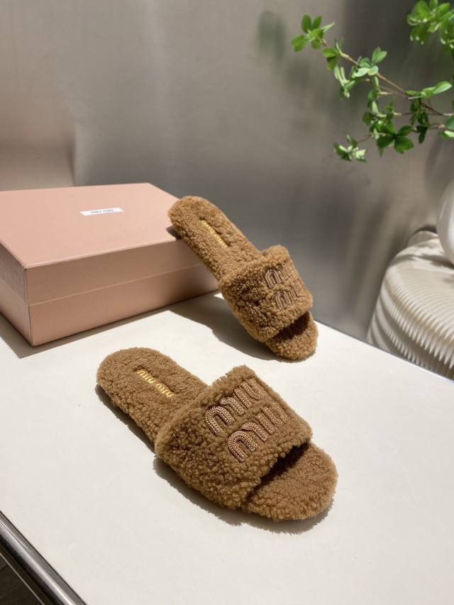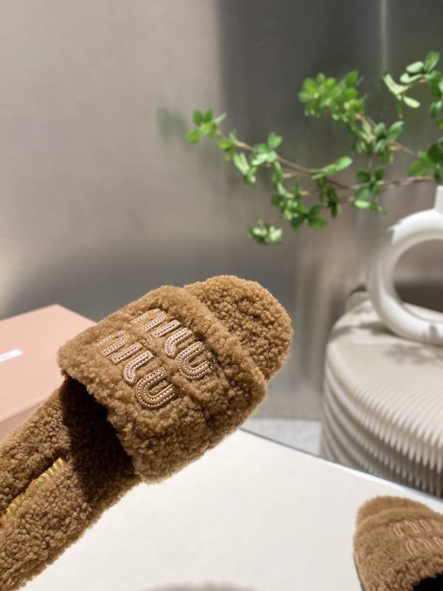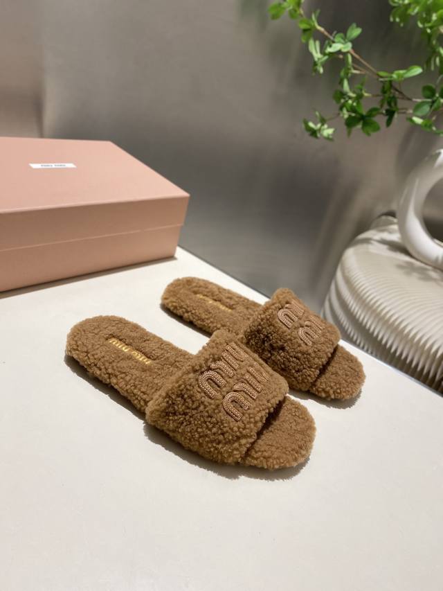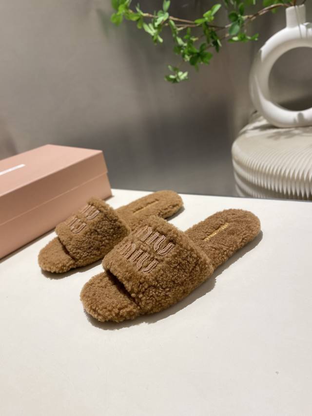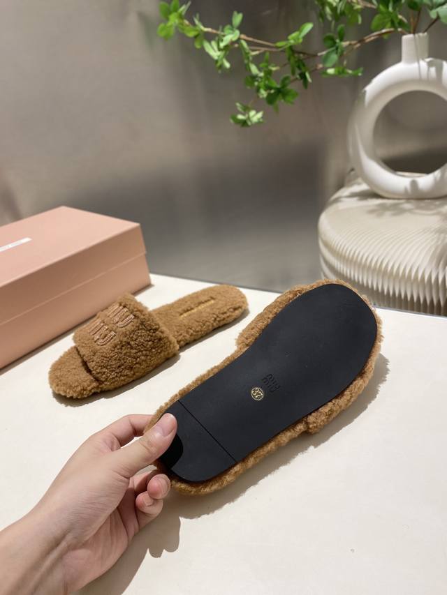 Factory Price p Miu Miu Top-Tier Version DDD 2025 Autumn/Winter Trendy Furry Slippers! 1:1 Mold Opening, Outshining All Other Versions on the Market. A Favorite Among European and American Socialites, Celebrities, and Influencers. Made with Imported Icelandic Wool, this single-color wool slipper is fluffy, soft, and skin-friendly. A winter essential with fashionable elements, the upper exudes a luxurious feel. Wearing it always showcases a woman's fashionable charm