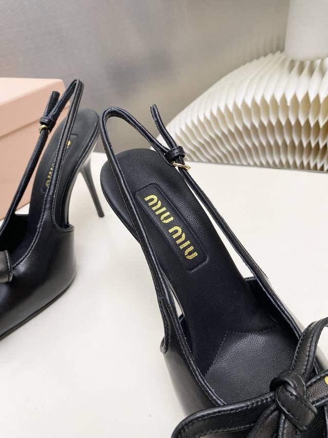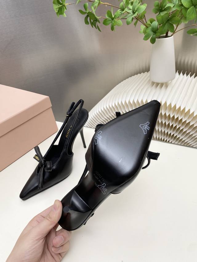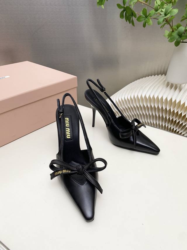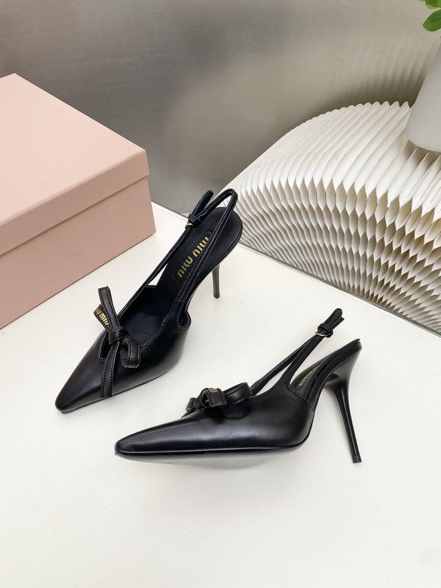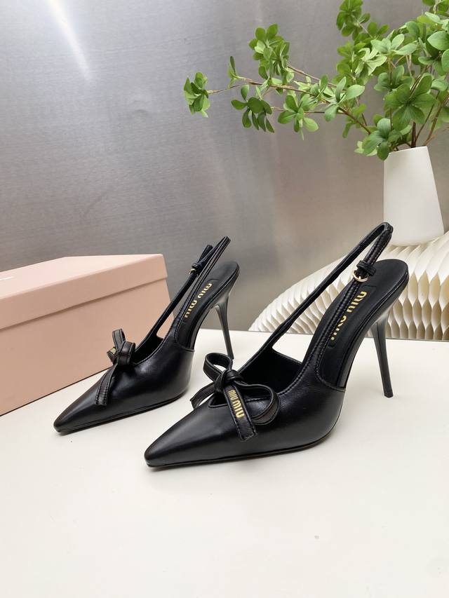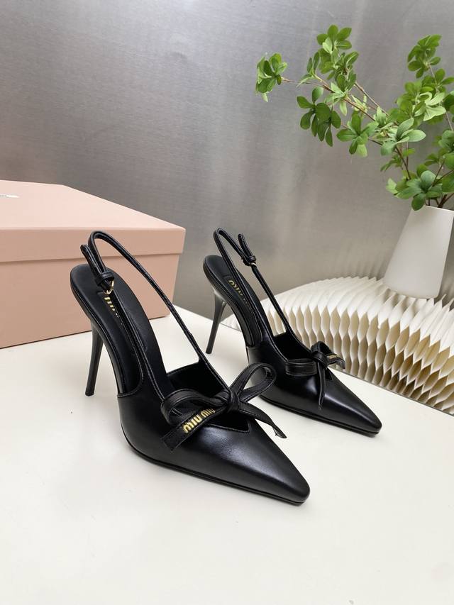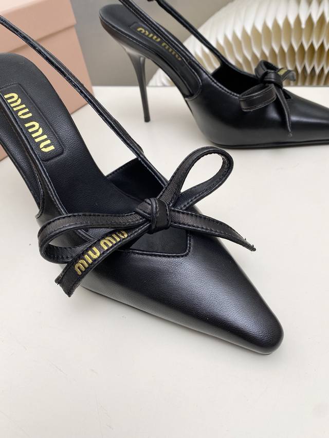Factory Price p Miumiu 2025 New Backless Sandals Series: Stylish and Chic, Perfect for Summer Coolness. Material: Sheepskin with Bow Elements. Features include a sheepskin insole, Italian imported genuine leather outsole, and sizes: 34-41. Custom orders are non-refundable and non-exchangeable. Heel height: 10.5cm. (DDD)