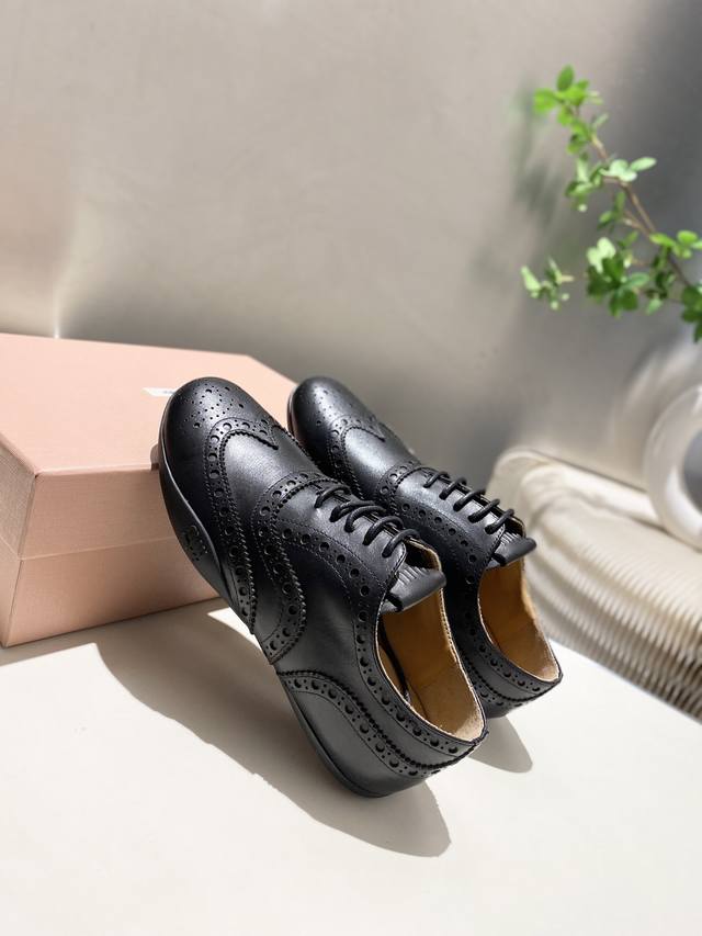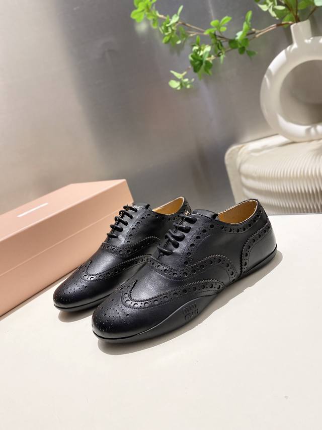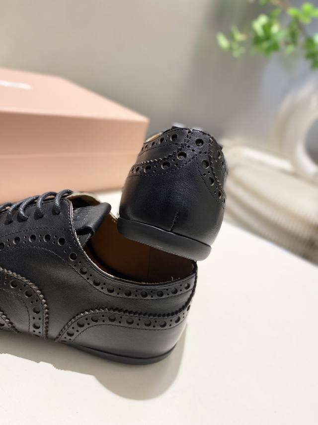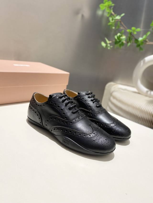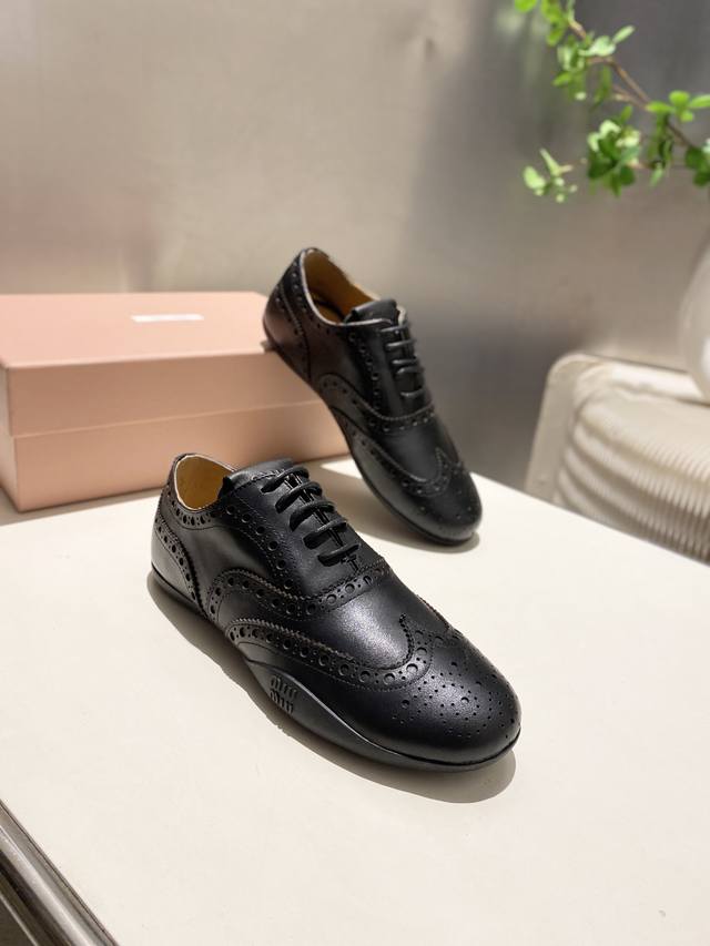 Factory price p Women's sports shoes, original Miumiu 2025 autumn and winter monk leather shoes, British retro, Baroque carved elements, beautiful and cool! Cool and street-cool! Stunning!