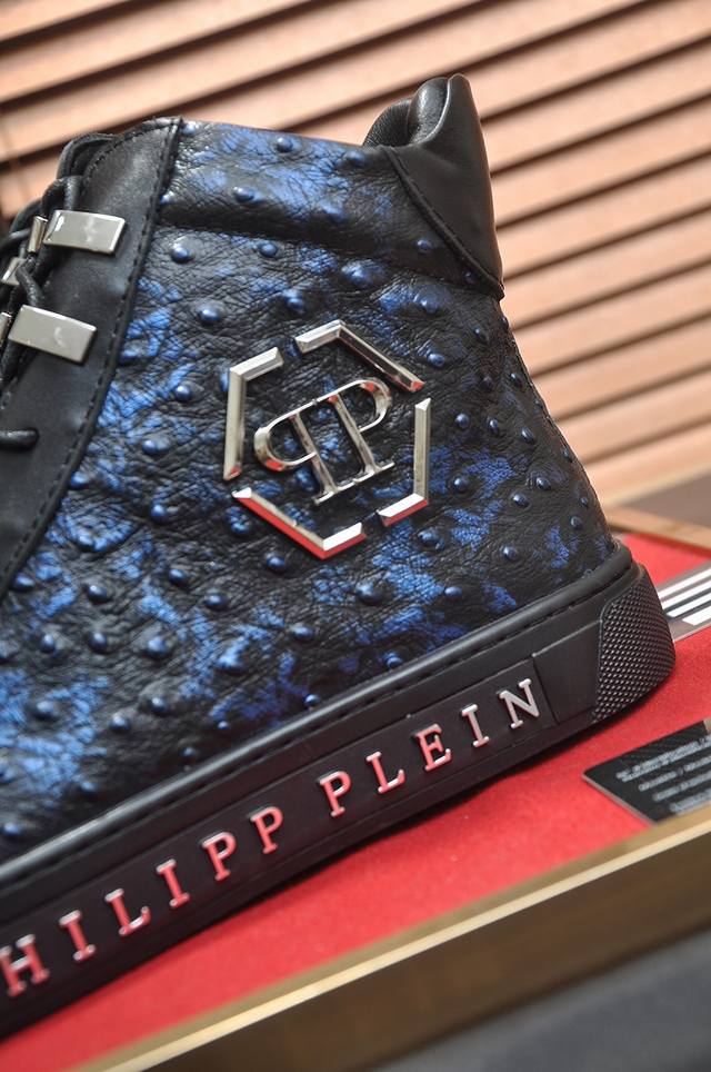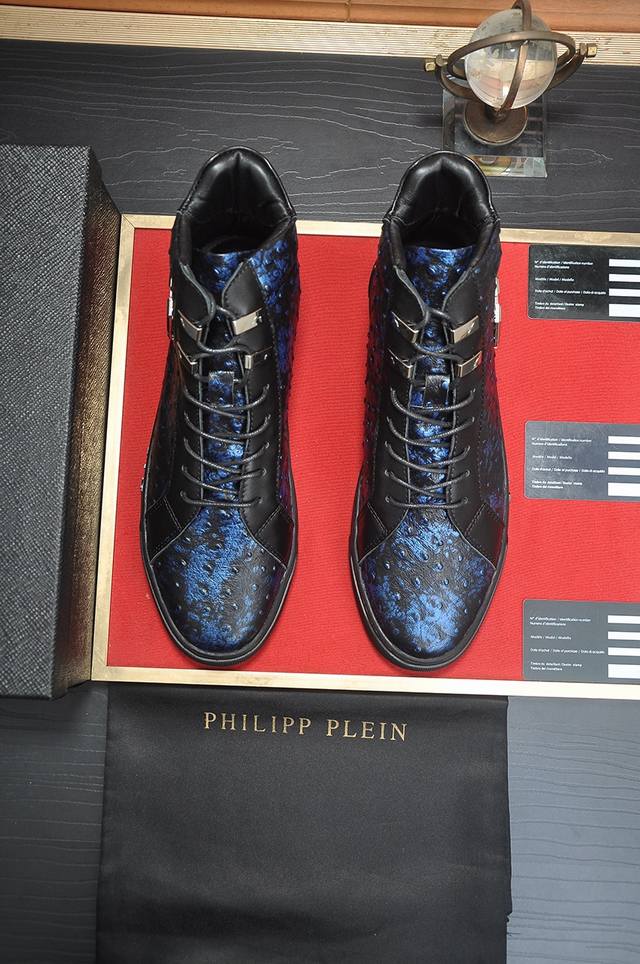 Factory Price Philipp Piein High-Top Leather Jacket with Full Sheepskin Lining - Latest Official Website Model, Original Mold. Outer Material: Original Top Grain Calfskin, Original Hardware Wheels, Lining: Sheepskin Lining. Exquisite workmanship, perfect last. Sizes: 38 to 45. Size 45 is custom-made and non-refundable.