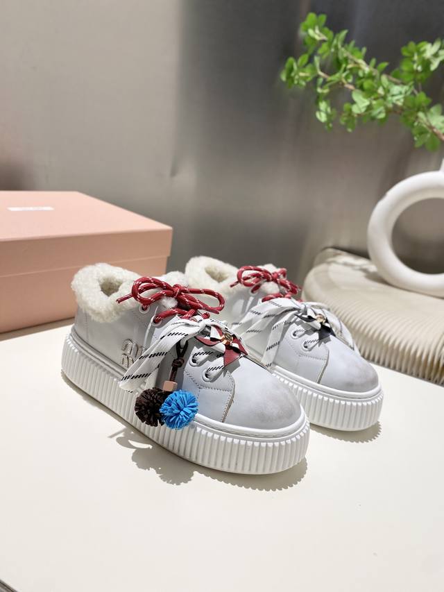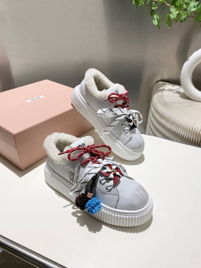Factory Price PP Fur Lining Leather Lining 2602025 Miu Miu Autumn/Winter New Thick-Soled Biscuit Shoes, Simple Design, Original Mold Sole, DDD The popularity of biscuit shoes is only increasing, not only because of their high adaptability but also because of their outstanding foot feel. The sole has layers of waves, just like a biscuit! The look is online and durable. Miu shoes have always been girly, and few girls can resist Miu's sweetness! This time it's Miu's biscuit shoe series DDD Although it is a simple design, the logo tongue is also very recognizable! It can be easily matched with long skirts, short skirts, jeans, casual wear, etc. to create a unique style DDD Upper: two panels of cow suede and cowhide, lining: two panels of wool and leather DDD Original mold outsole. Outsole 6Cm DDD Sizes 35-41. Size 41 is custom-made and non-refundable DDD