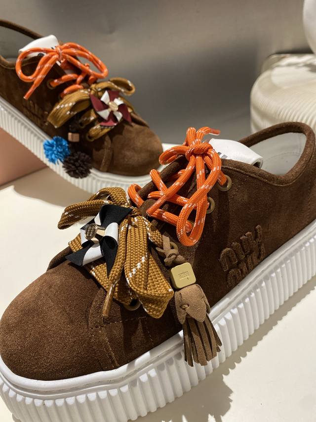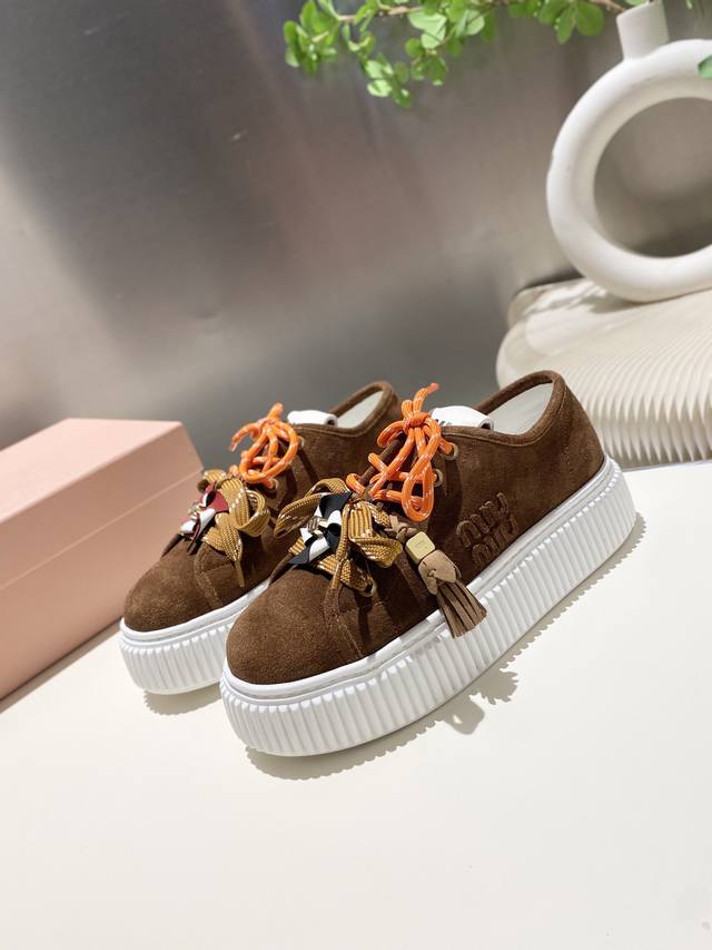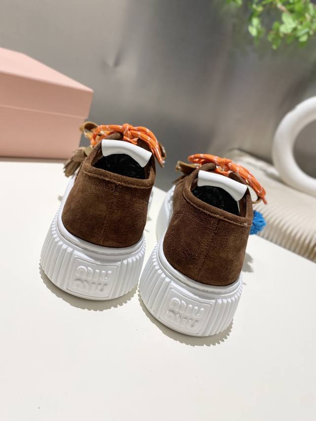 Factory Price PP Fur Lining Leather Lining 2602025 Miu Miu Autumn/Winter New Thick-Soled Biscuit Shoes, Simple Design, Original Mold Sole, DDD The popularity of biscuit shoes is only increasing, not only because of their high adaptability but also because of their outstanding foot feel. The sole has layers of waves, just like a biscuit! The look is online and durable. Miu shoes have always been girly, and few girls can resist Miu's sweetness! This time it's Miu's biscuit shoe series DDD Although it's a simple design, the logo tongue is very recognizable! It can be easily matched with long skirts, short skirts, jeans, casual wear, etc. to create a unique style DDD Upper: Two panels of cow suede and cowhide, lining: two panels of wool and leather DDD Original mold outsole. Outsole 6Cm DDD Sizes 35-41. Size 41 is custom-made and non-refundable DDD